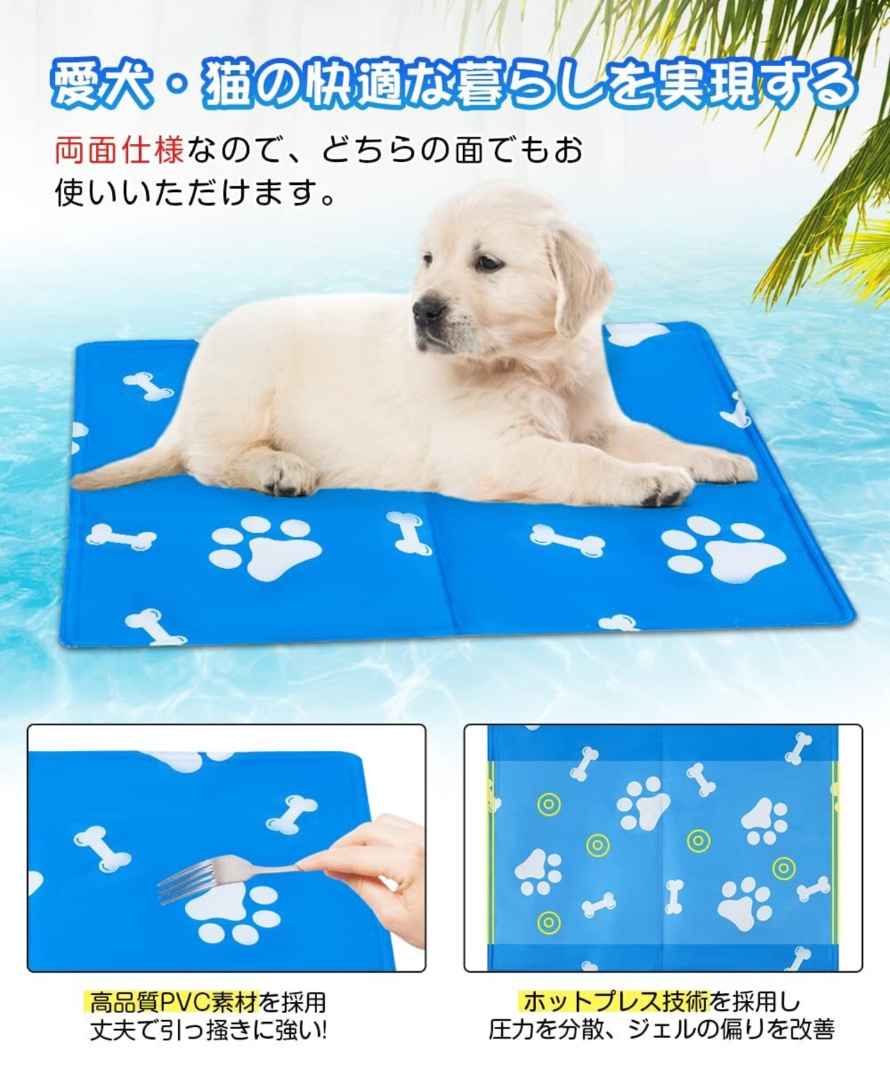 【夏用ペットひんやりマット】ペット冷感マットは、高品質のPVC素材を採用し、防水性、耐摩耗性、耐久性に優れています。ひんやりマッドの中には100%高分子ゲルで、高い熱伝導性と拡散性を持つ冷感ジェルで、体の熱を吸収して自然なヒンヤリ感を提供し、ペットの熱中症対策として暑い夏に最適です!