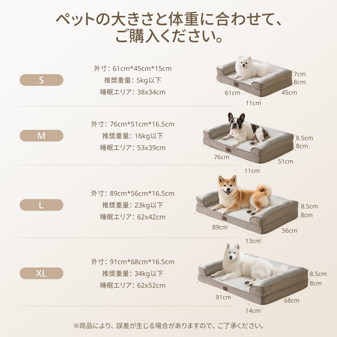 Sunquinn 犬 ベッド ペットベッド 犬用ベッド 防水 抗菌 洗える 高反発 取り外せるカバー 滑り止め オールシーズン 小型犬 中型犬 高齢犬 猫 多頭飼い 枕付き ソファー クッション 蒸れにくい(外寸61Lx45Wx15Hcm ベージュ)
