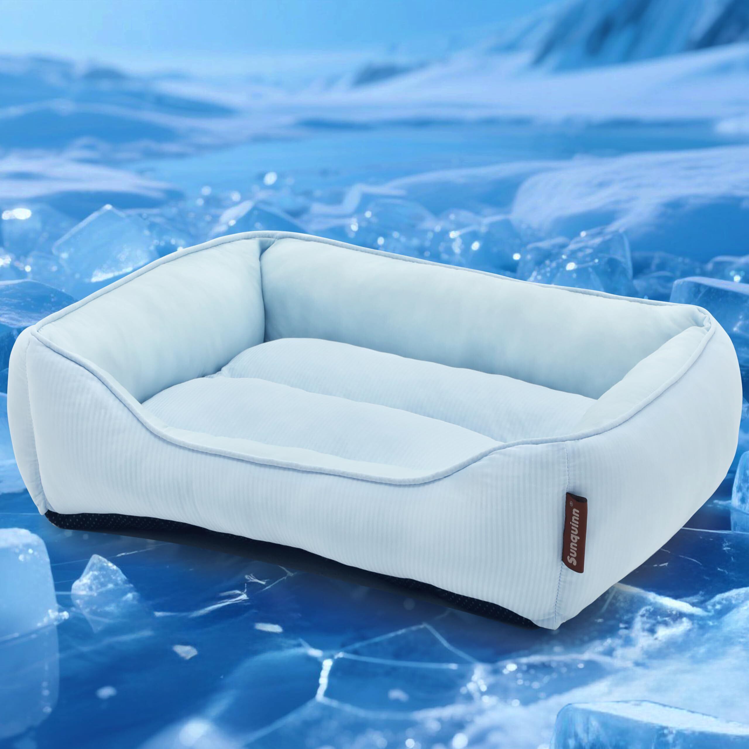 Sunquinn 猫 犬 ベッド 夏 猫ベッド 犬用 ペットベッド ひんやり クール 冷感 夏用 抗菌防臭 滑り止め クッション 洗える 通気性 暑さ対策 スクエア型(外寸50Lx40Wx14Hcm ブルー)