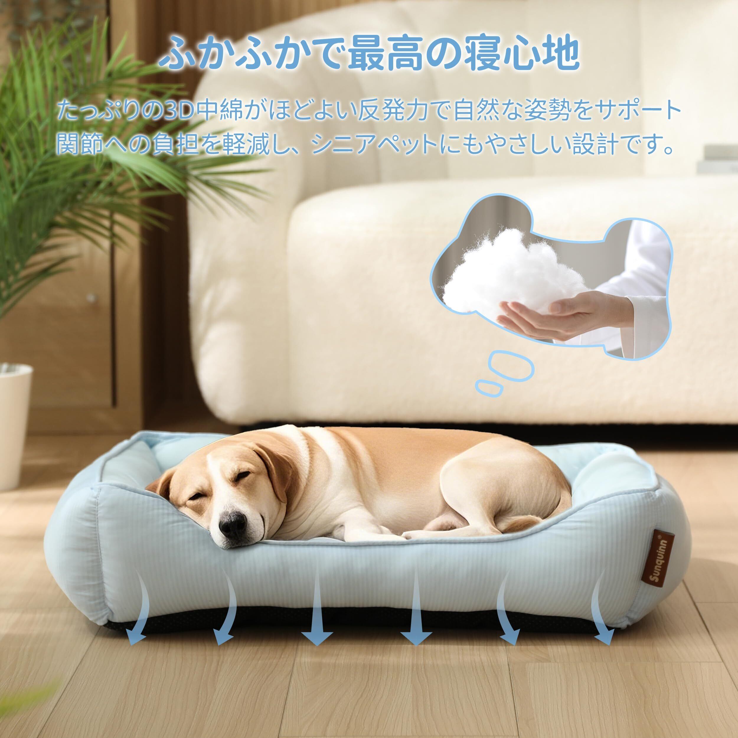【優しい弾力性とふんわり快眠】バランス良く詰め込まれた高弾性中綿が、寝姿勢の圧力を分散し、愛するペットの体を優しく包み込みます。通気性と適度な反発力で体重をしっかりサポートしながら、型崩れしにくい耐久性を実現。ふんわりとしたクッション性が長く持続し、シニアや成長期のペットにも最適。まるで雲の上のような心地よさで、毎日の深い眠りと健やかな休息を約束します。