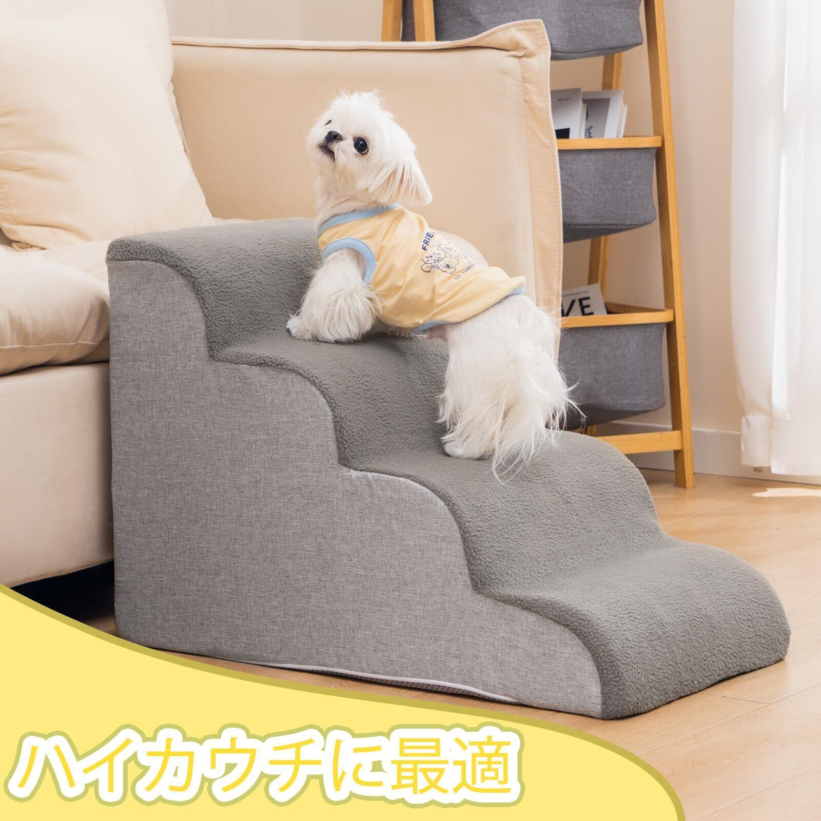 【小型犬用スロープ】-当社のペット用階段は従来のペット用階段と異なり、17°の快適な傾斜ステップのデザインを採用し、ベッドの上り下りが困難な犬により良い助けを提供し、関節に優しいです。