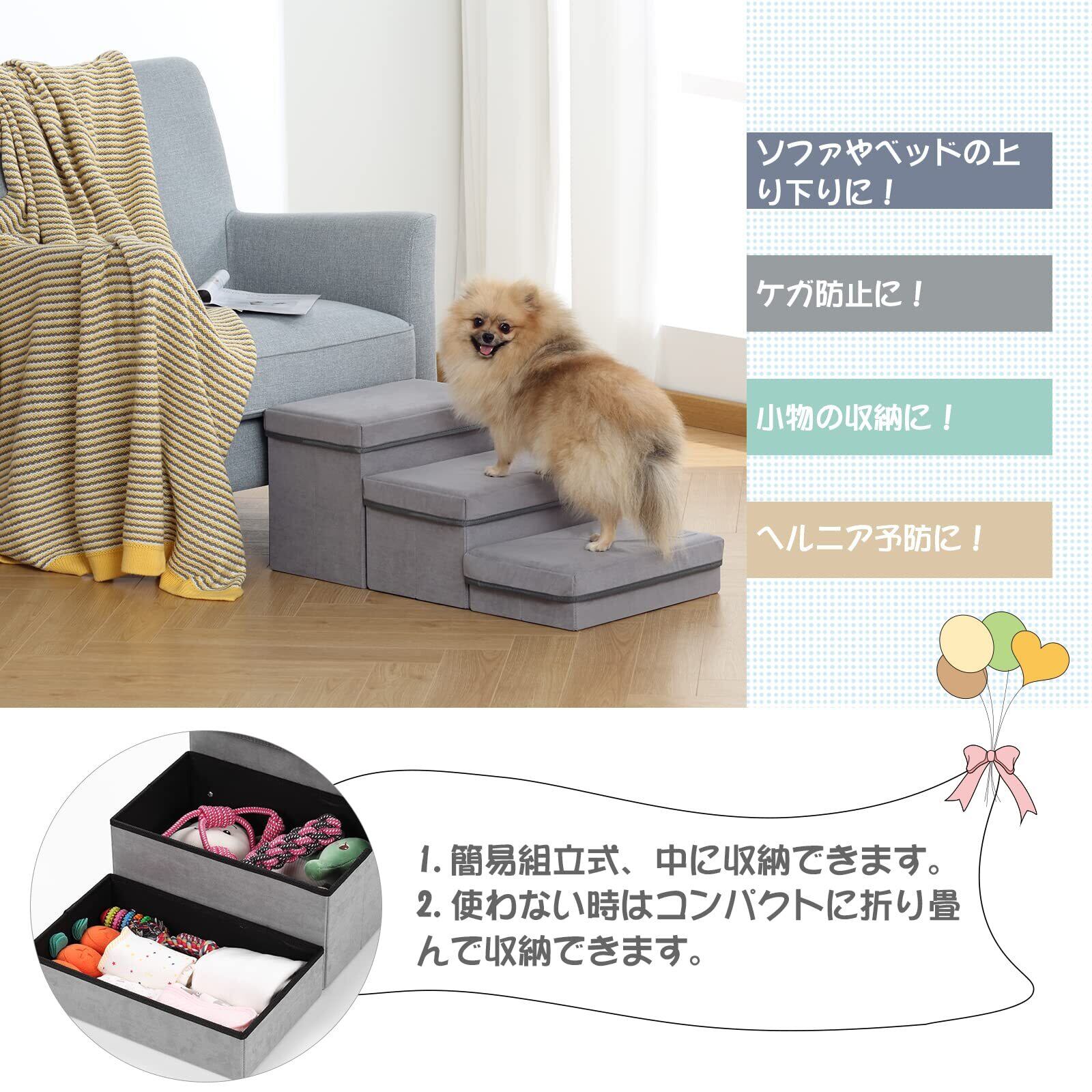 ドッグステップ 3段 犬 ペット用階段 踏み台 収納型ペットステップ 耐荷重20KG 足腰への負担を軽減 怪我防止 安全 小型犬 ヘルニア 高齢犬 シニア犬 収納ボックス 組立ペットステップ 介護用品