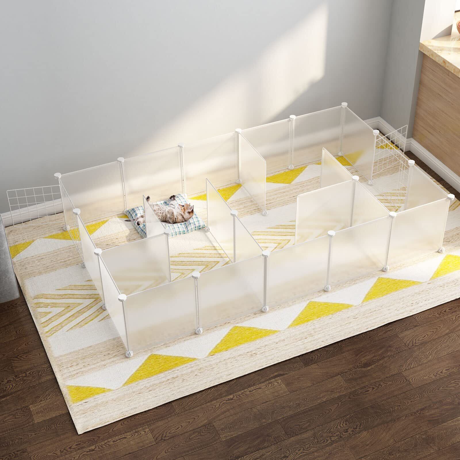 【2枚のドアを用途別に使い分け】パネルサイズ 35cm x 35cm 26枚セットには2枚のドアパネルを用意しており、網目が1.5cmと細く、ハムスター、うさぎ、モルモット、フェレットなどの小動物に最適です。ドアパネル2枚入りで、トイレのお手入れと食器のお手入れを別々のドアから行いたい時などは非常に便利です。枚数が26枚と多く、上からの脱走防止に天井を作ることもできるので、小さい猫ちゃんにもお使いいただけます。