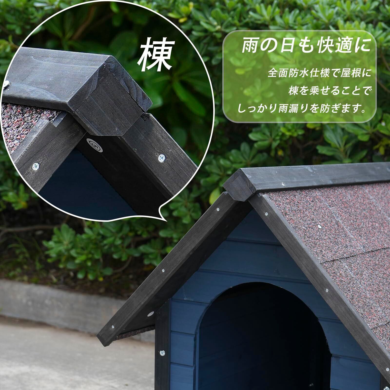 木製ドッグハウス、屋内屋外兼用、アスファルト屋根付き、防風防雨、耐久性のある犬小屋、ナチュラルブラウン (ブルー, 88*64.99*73)
