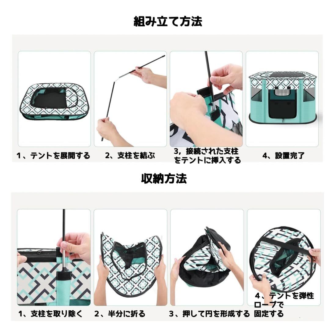 【商品仕様】サークル*1、支柱*8、キャリーバッグ*1、S:70*55*45cm(組み立て)、重さ:900g;M:80*60*55cm(組み立て)、重さ:1120g;L:90*70*80cm(組み立て)、重さ:1240g;材質:600Dオックスフォード/スチール