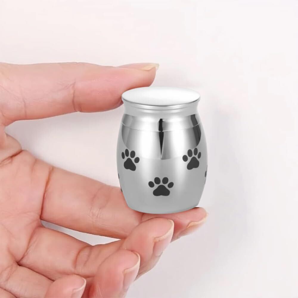 YBGGJO ミニ骨壷 4x3cm ペット骨壷 メモリアル骨壷 犬 猫 遺骨入れ 納骨容器 ステンレス製 肉球マーク模様 ペット仏壇 メモリアル用品 銀色