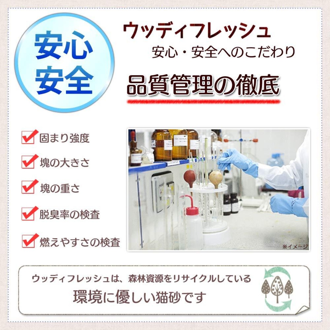 【商品説明】:木を原料とした、燃えるゴミとして処理できるネコ砂です。「固まる+脱臭」効果の木製の猫砂です。抗菌粒を配合しています。燃えるゴミとして処理できます。