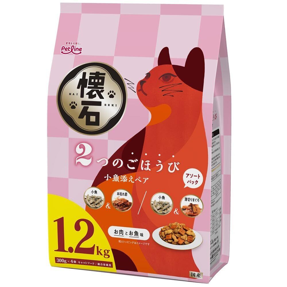 ペットライン 懐石 2つのごほうび 小魚添えペア キャットドライ 総合栄養食 【国産/小分け】1.2kg