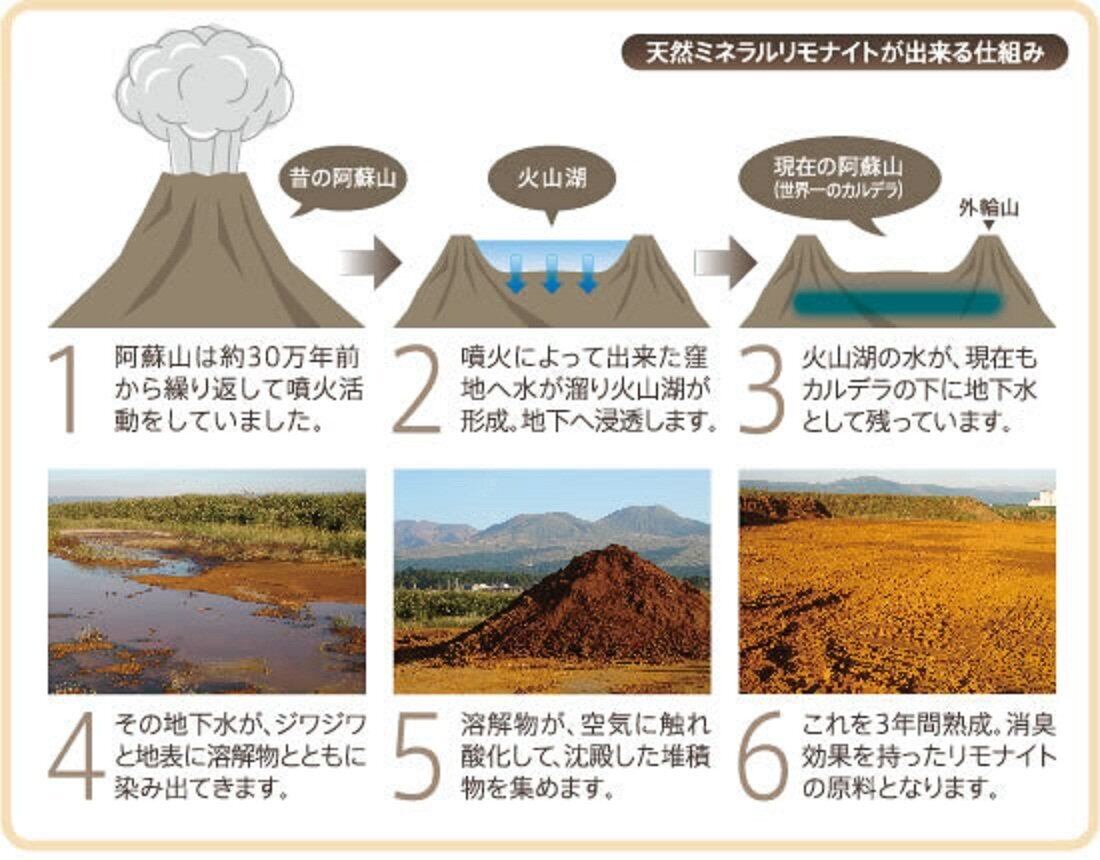 国産鶏ささみに、天然ミネラル「リモナイト」を配合。愛犬・愛猫の、フン臭、口臭、体臭、尿臭を抑えます。臭いがなくなるだけでなく、とても美味しいリモナイト。一度食べたらやみつきです。2005年の発売以来、大好評のリモナイトシリーズ。 「リモナイトとは」阿蘇山の麓で採れる天然ミネラル。(地元では古来から阿蘇黄土と呼ばれている天然ミネラル) 現在では、火山湖はなくなり、人が住める大地となっていますがカルデラ内の一部の地域だけ、火山湖の水が地下水として残っています。 その地下水が、ジワジワと地表に染み出てきて空気に触れては溶解物が酸化して沈殿しそれを繰り返して地表に堆積していきます。まさに自然の神秘が生み出した、希少な成分で鉄分が69%も含まれています。にゃんこのリモナイトには、この鉄分を特別な構造に変化させて配合しており、それが、消臭効果を持つ成分となっています。