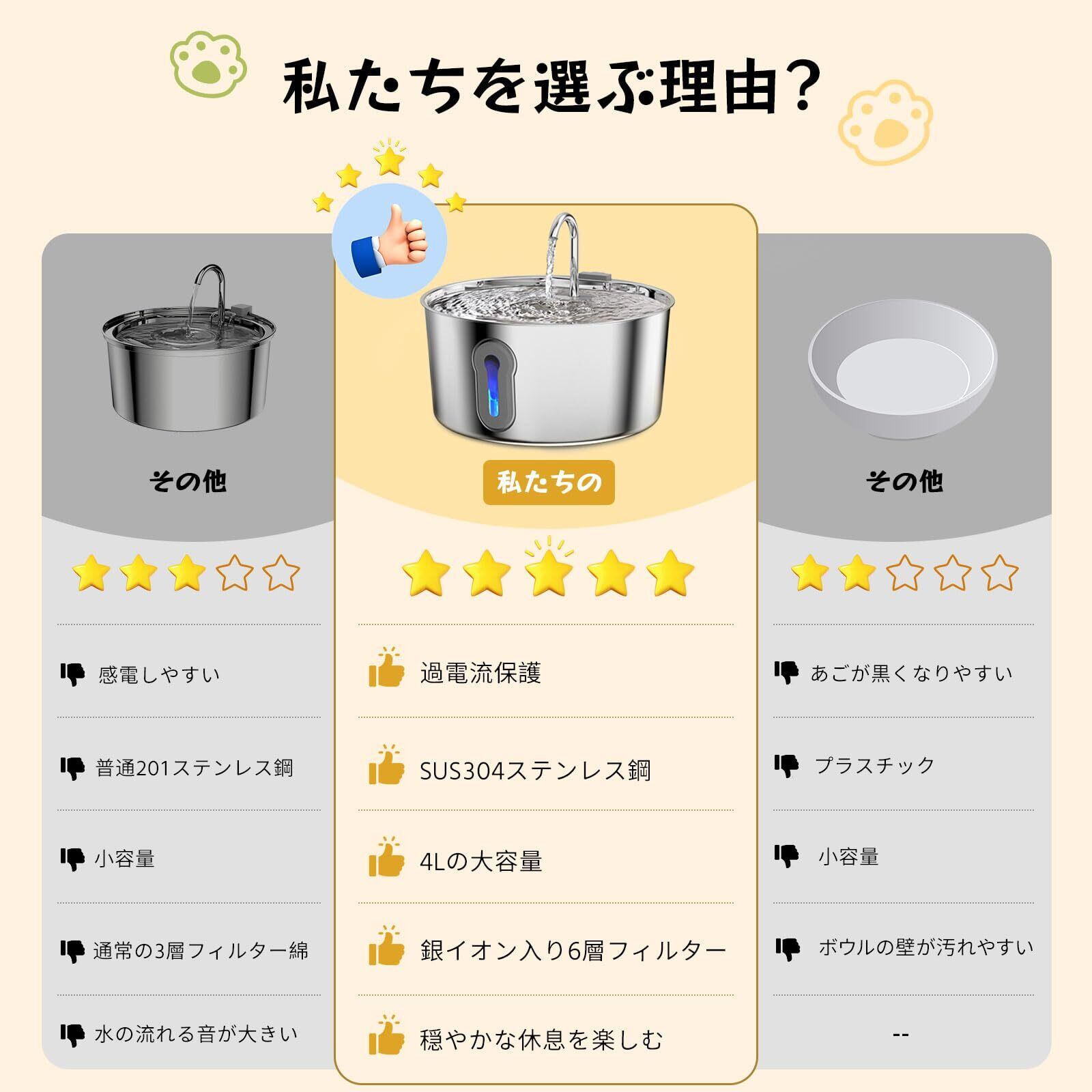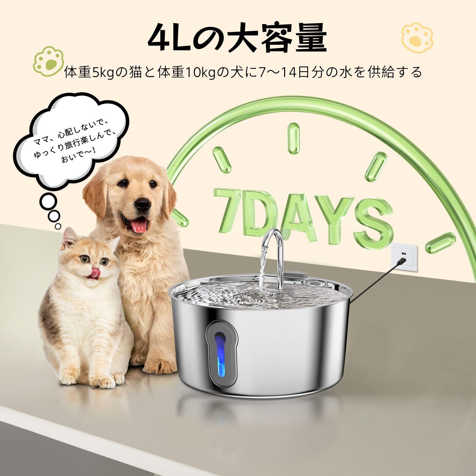 【2025新登場|4L大容量|銀イオン6層フィルター綿】GERYTOR 猫 給水器 猫 水飲み器 犬 水飲み器 自動給水器 猫 ステンレス製 ペット 水飲み器 ペット給水器|LEDライト付き USB給電式 静音 循環式浄水 節電設計|猫 犬 鳥用 多頭飼い/お留守番対応(純正フィルター2枚付)水洗い可能 ペット用品