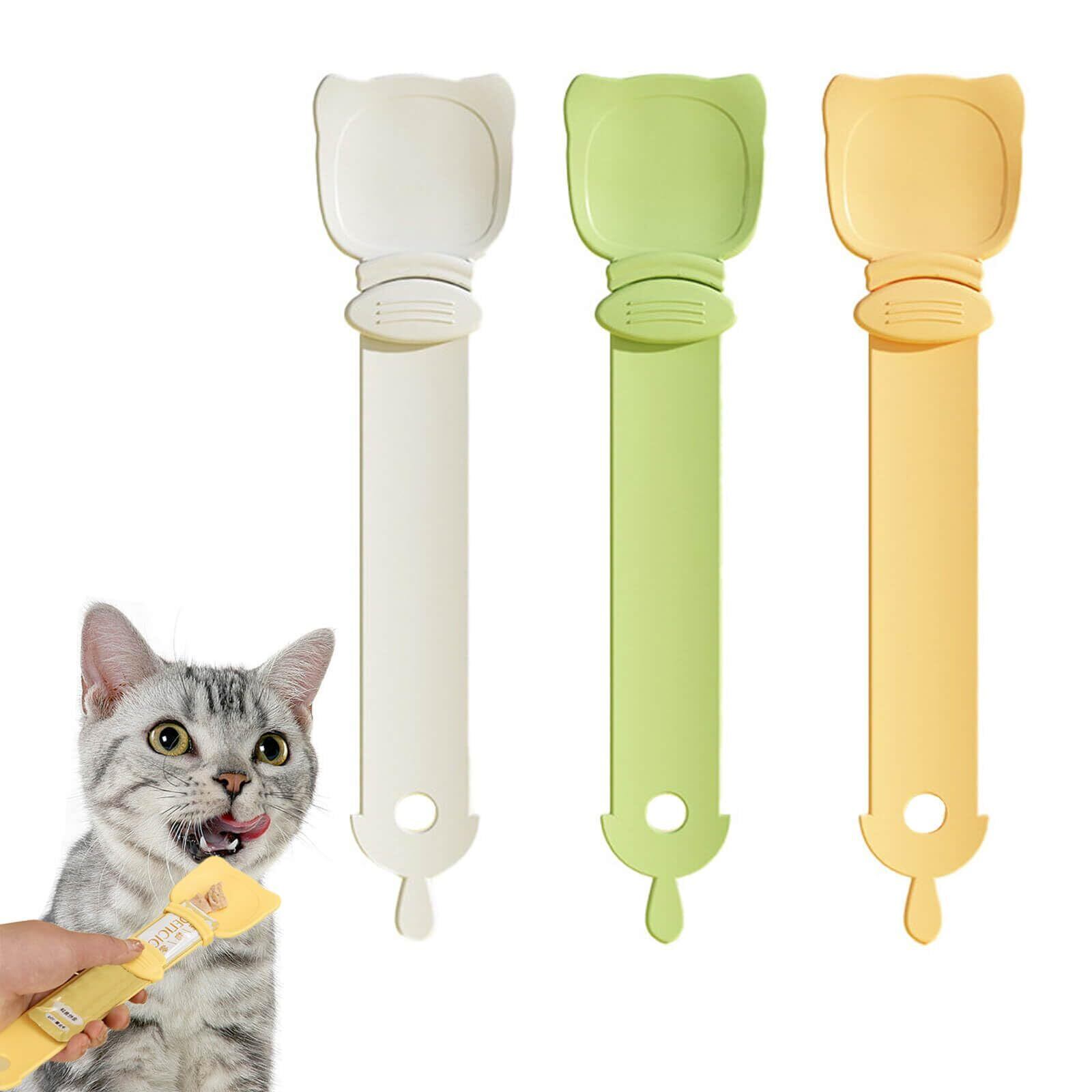 チュール スプーン 猫用 給餌器 3個セット 3色 片手で操作可能 おやつ押出器 洗浄しやすい 持ち運びが簡単 猫のスプーン 全種類の猫適用 ペット用品 簡易給餌 凹型の収納溝 ホワイト+イエロー+グリーン