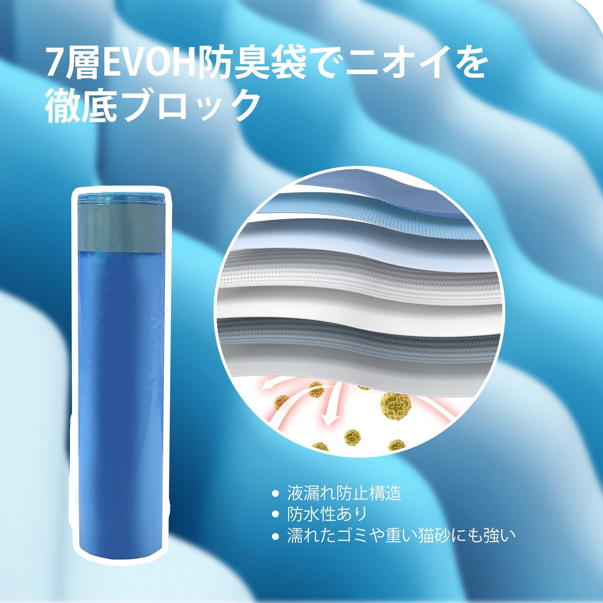 【強力防臭|7層構造の専用袋+トリプル密閉設計】ニオイ漏れを徹底ブロック。7層EVOH素材の専用袋に加え、フタ・投入口・内部構造の3重密閉で、猫砂やオムツのイヤな臭いをしっかり閉じ込めます。