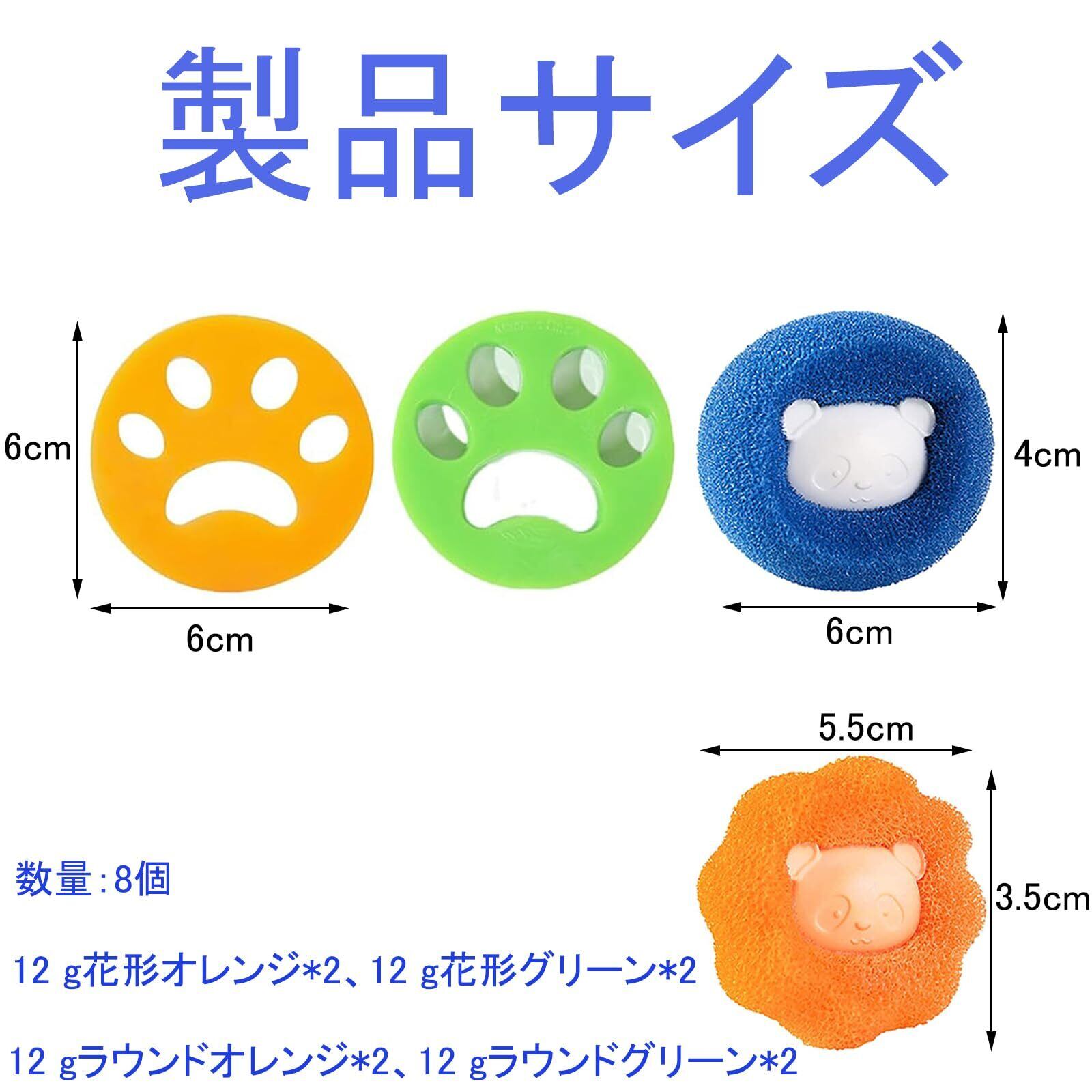 商品説明:数量:8個セット,12 gラウンドオレンジ×2個、12 gラウンドグリーン×2個、ブルー×2個、オレンジ×2個。洗濯機のクリーニングボールは髪の毛や糸くずを集めることができます。 洗濯機に入れて、すぐに使用できます。