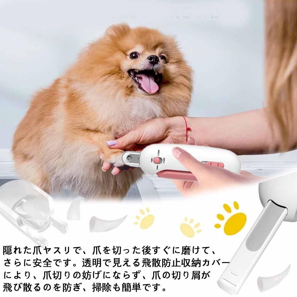 ペットのためのプロフェッショナルな爪ケアを提供する、このペット用爪切りは猫や犬のために特別に設計されており、多段階調整、隠れた爪やすり、防飛散設計が特徴で、ペットの爪を簡単かつ安全にトリミングできます。