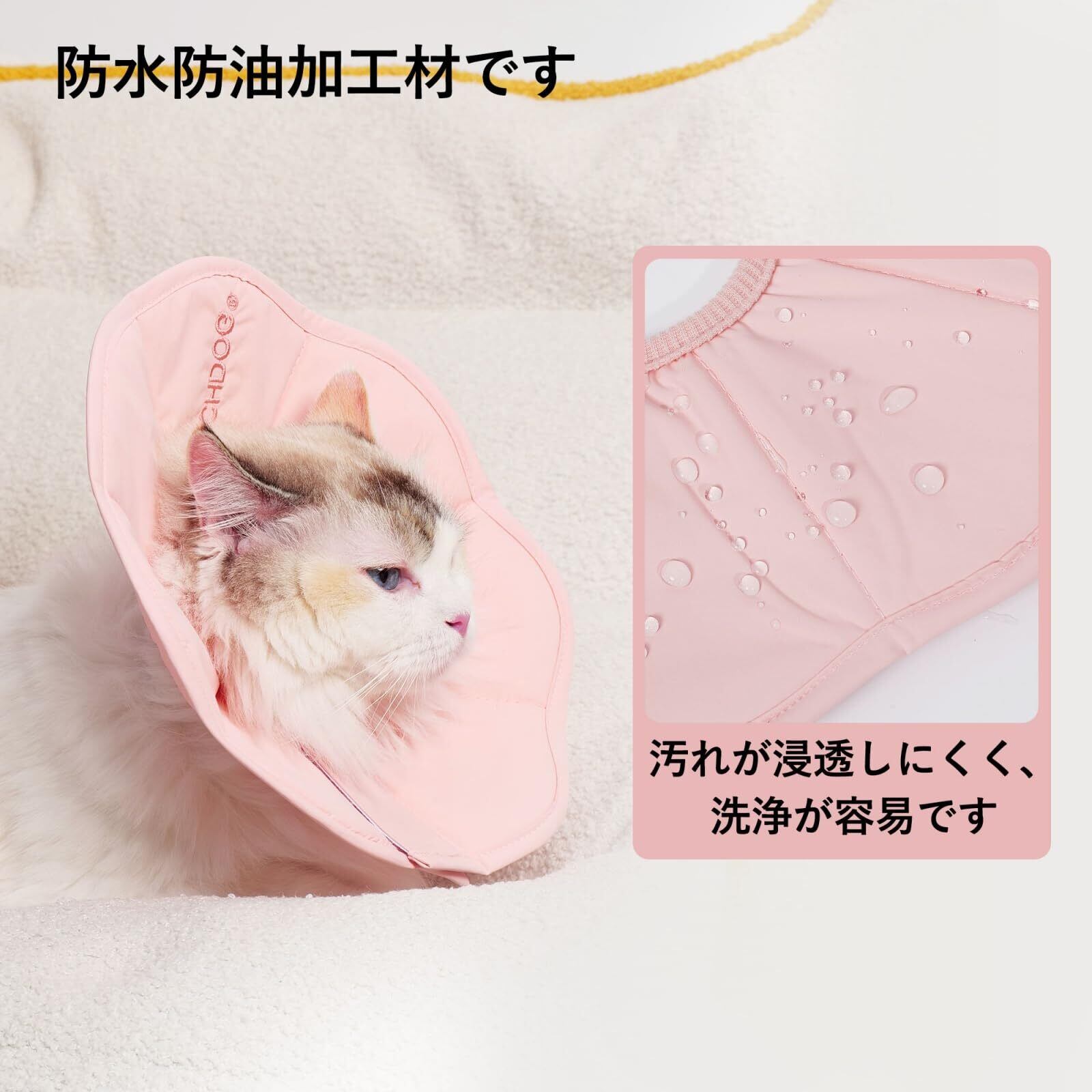 24.5cm広範囲保護 & 防水PUコーティング広い視界を保ちつつ、傷口を舐めたり引っ掻いたりするのを効果的に防止。防水や汚れをはじき、お手入れ簡単。な術後環境を維持します