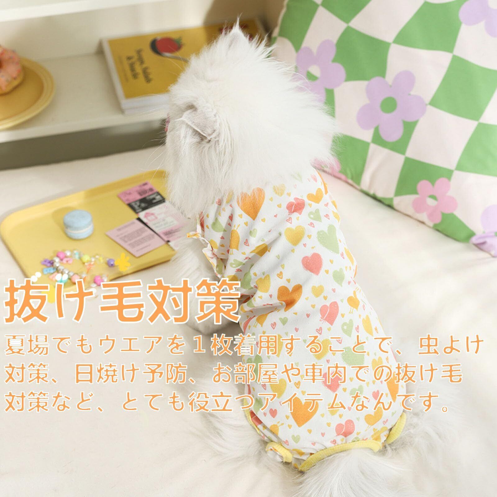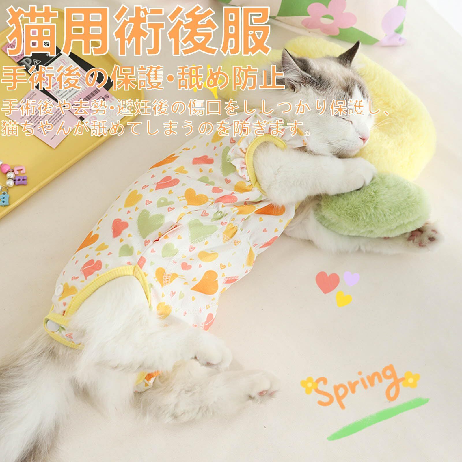 HAKONA 猫 術後服 メス オス猫 服 舐め防止 傷口保護 引っ掻き防止犬 術後服 女の子 男の子犬 介護用品 犬服 春夏猫 ロンパース かわいいハート型猫用術後ウェア猫服 離乳服 ねこの服 ストレス軽減 着脱が容易 抜け毛対策ペット用品(XS-胸囲35cm 背丈24cm(推奨体重1.5~2kg))