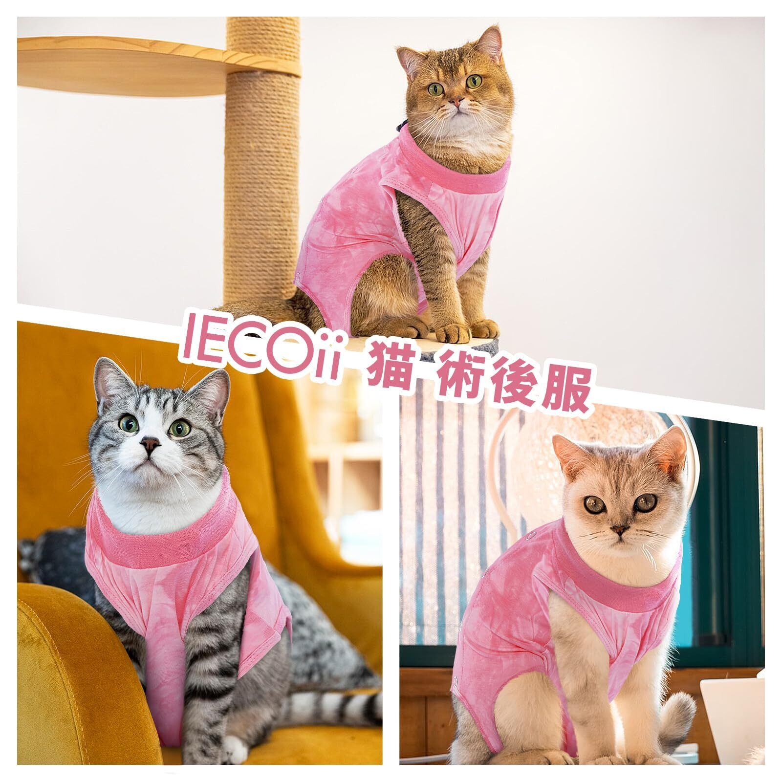 IECOii 猫 術後服 猫用リカバリースーツ 手術用 エリザベスカラーに代わり 舐め防止 ペット術後ウェア 皮膚保護 傷口保護 避妊 離乳 介護服 男女兼用 ピンク M