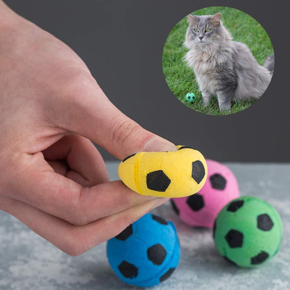 【明るい色】:4つの異なる色と目を引くサッカーのデザインにより、このボールは屋外で簡単に取り出せ、ペットの興味を引くのも簡単です。明るい色は猫を刺激して遊びに興奮を与えます。キティの安全のための柔らかく、軽く、無毒のスポンジボール。