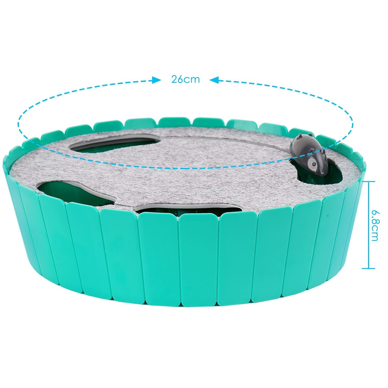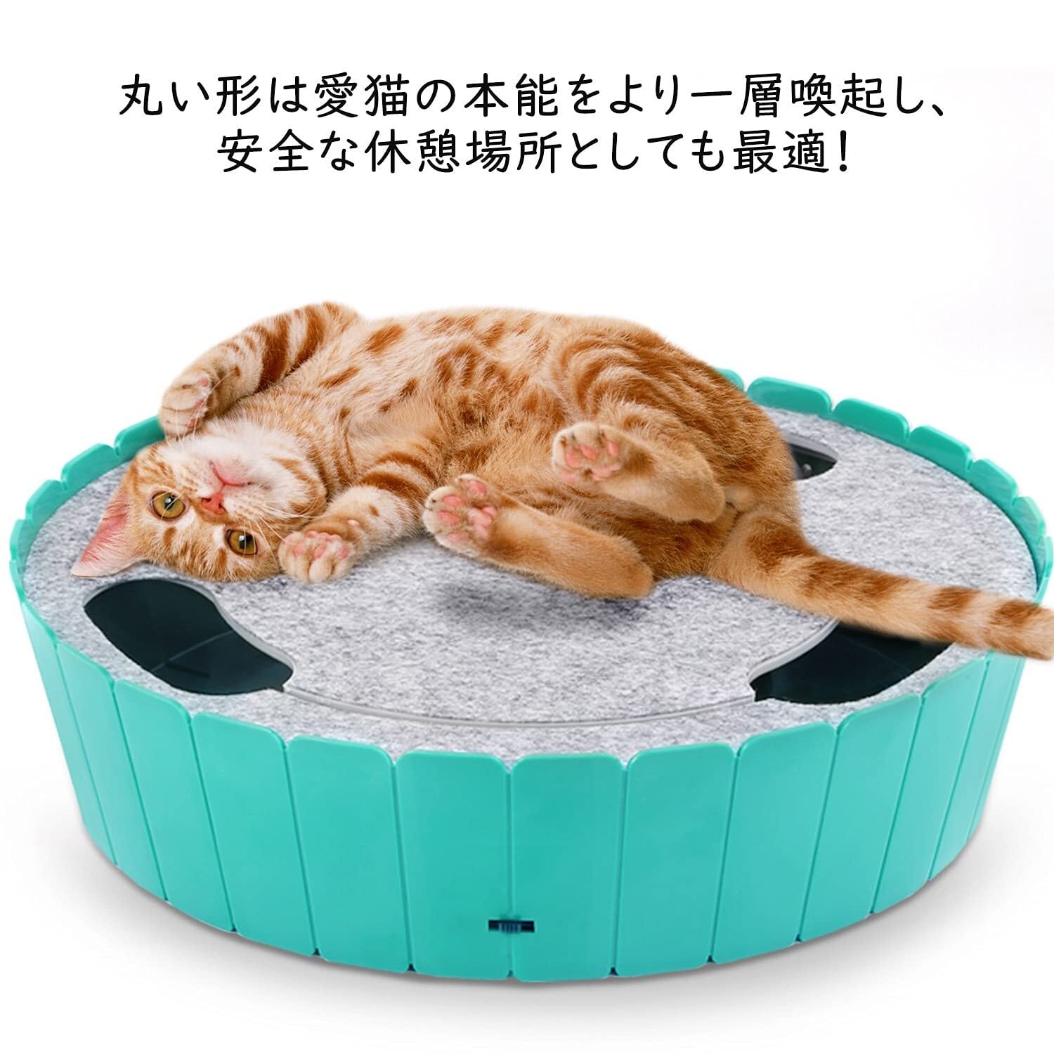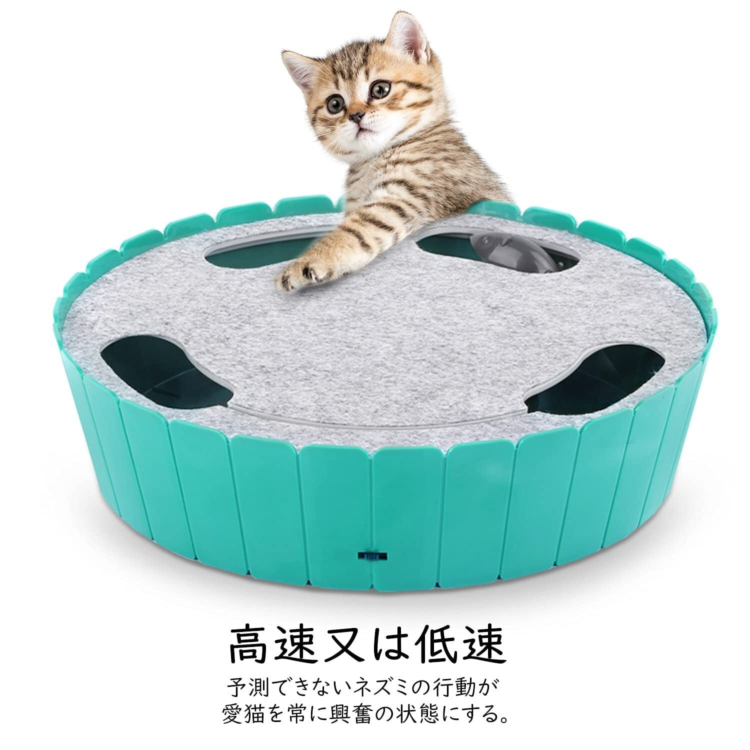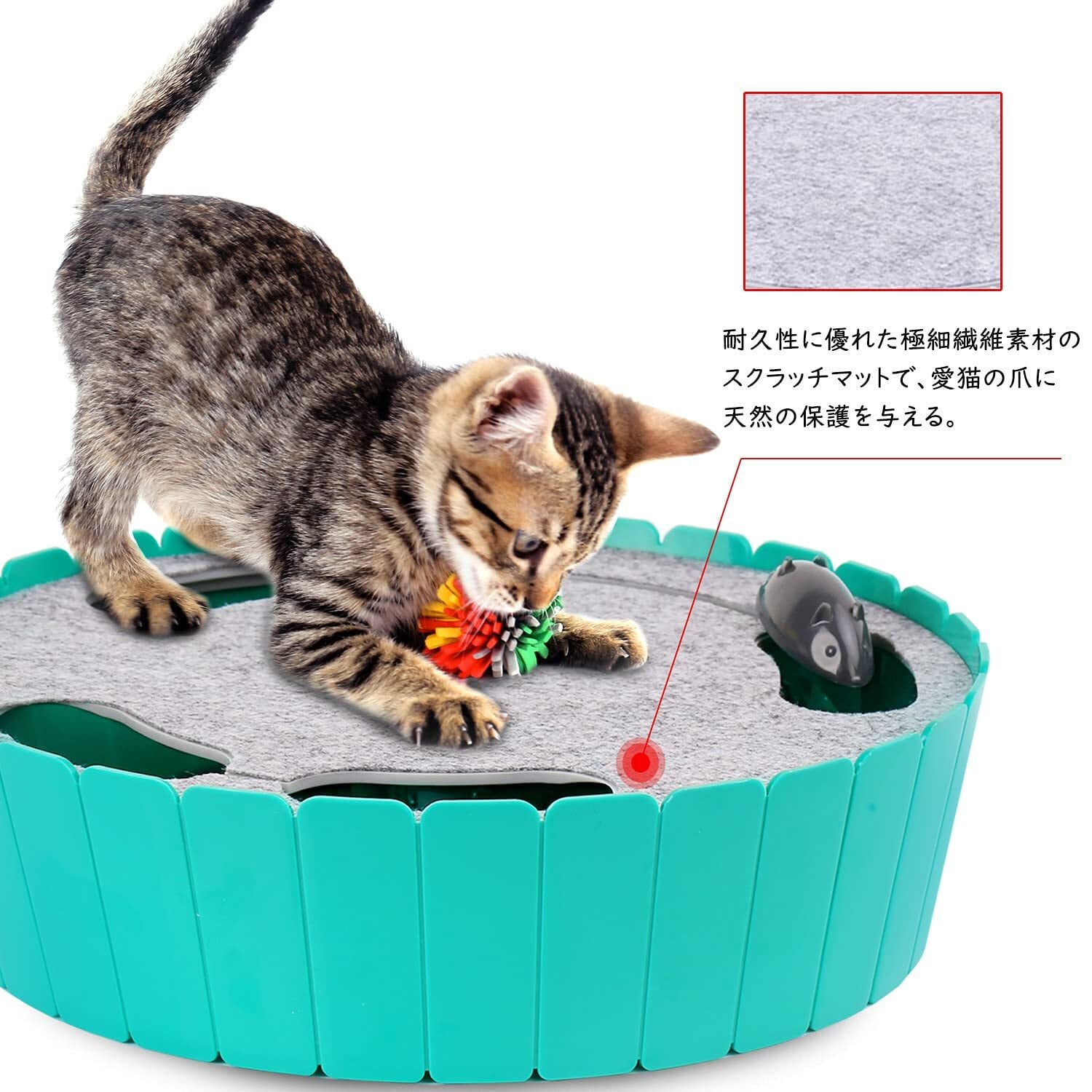 「安全快適素材」 おもちゃ全体及びネズミは上質なABS素材を採用し、頑丈で耐久性に優れて、お手入れもとても簡単です。上の部分はフェルトで作り上げて、おもちゃにふわふわな雰囲気を与えて、電源オフの状態で、愛猫の休憩所としても使えます。