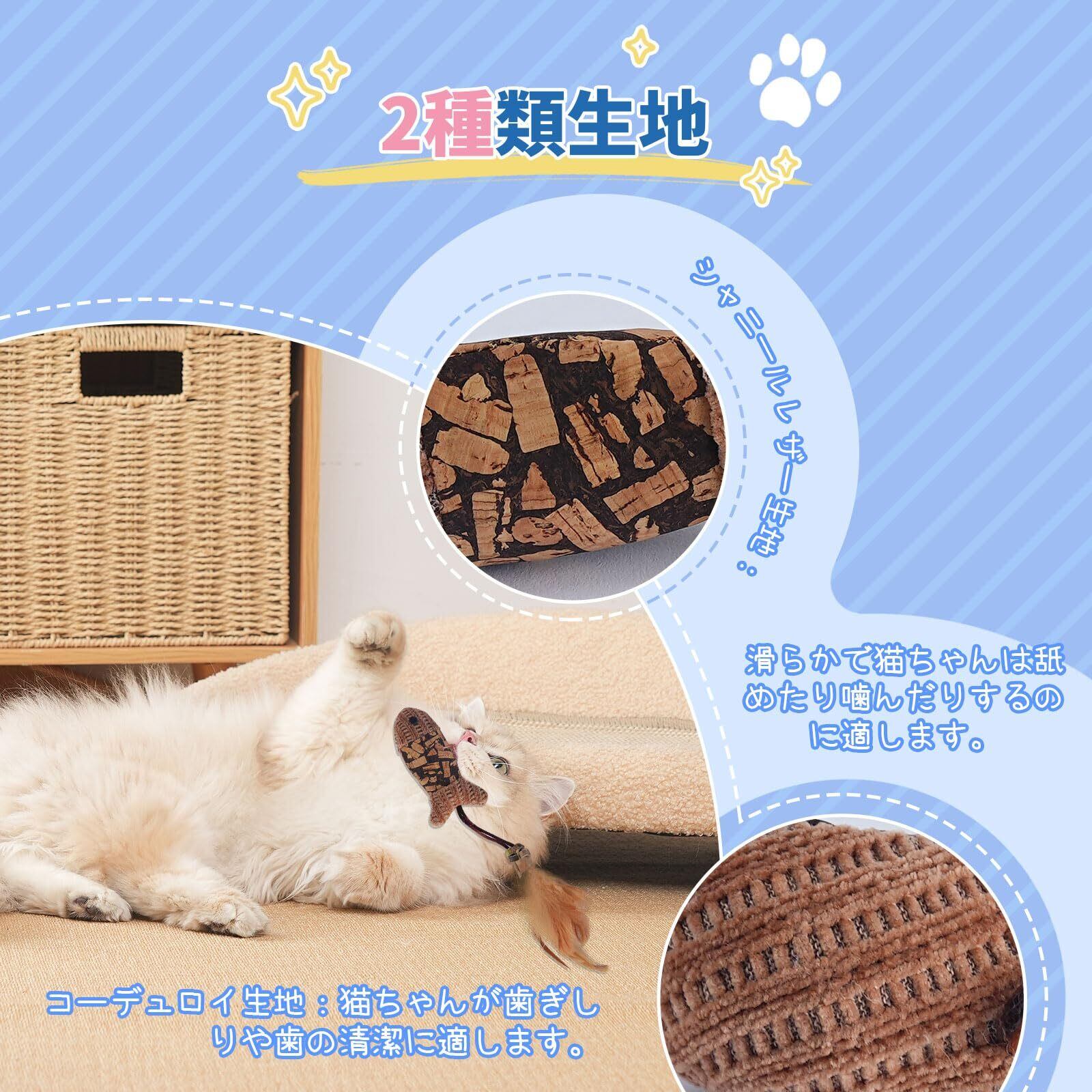 【2種類生地・羽付き】猫の噛むおもちゃは2種類の生地を使用した猫の運動にぴったりです。滑らかな質感で猫がなめたり噛んだりするのに適しています。一方、コーデュロイ生地は柔らかく、猫が歯ぎしりや掃除をするのに適しています。天然の羽根も付いているので、猫ちゃんの好奇心を刺激し、興奮させてくれます。