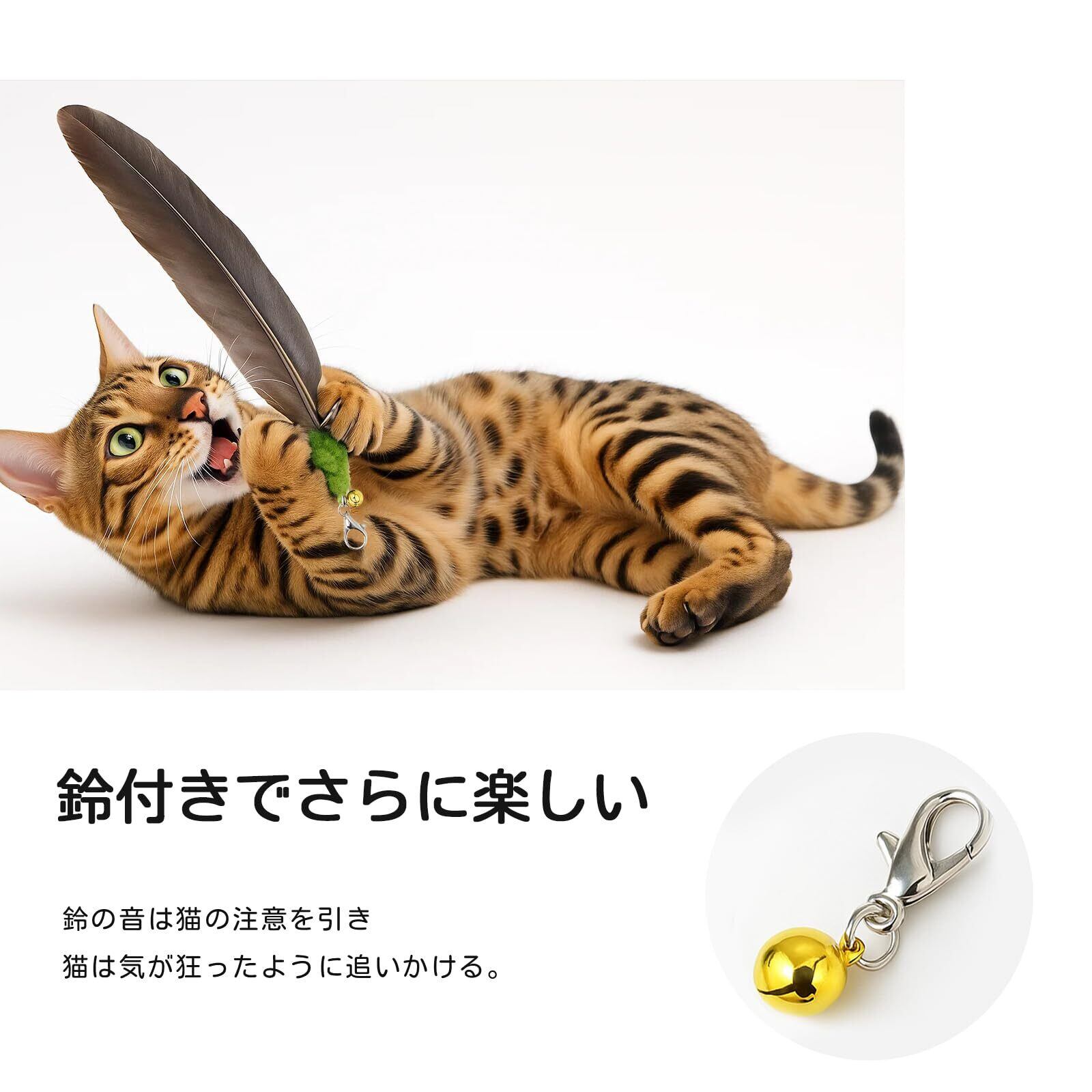 【鈴付きで音も楽しめる】猫じゃらしは小さな鈴がついており、猫ちゃんの好奇心をさらに刺激します。ただ羽を追いかけるだけじゃなく、音の楽しさも加わるから、猫ちゃんもいつもより興奮します。このねこじゃらしは室内飼いの猫のストレスや運動不足を効果的に解消することもできます。