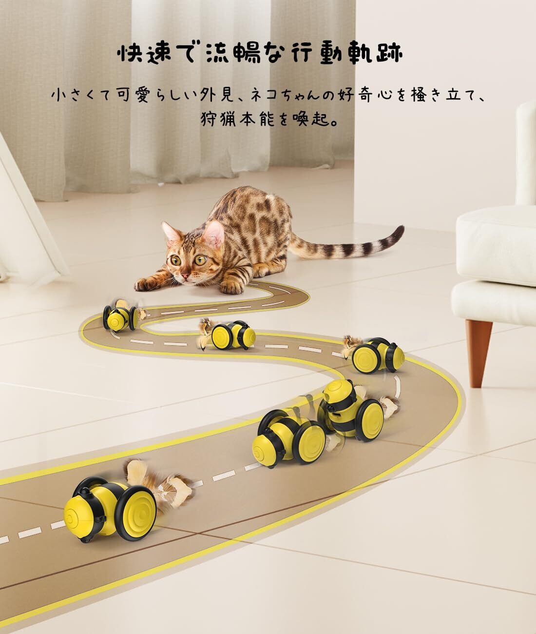 Pawaboo 猫おもちゃ 電動おもちゃ追いかけおもちゃ 光るおもちゃ 自動の猫おもちゃUSB充電 羽根付き LEDライト付き 走るおもちゃ 障害物回避 自動オフ 一人遊び 留守番 肥満対策 運動不足解消 ストレス解消 暇つぶし ハチモチーフ