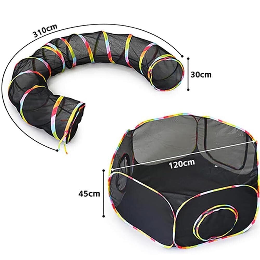 猫のトンネル、120cmペットサークル+315cmトンネル 、トンネルが付いているペット小屋、六角形-折りたたみ式犬のプレイペン猫のテントのプレイペンのプレイハウスのキャットトンネルの落下網