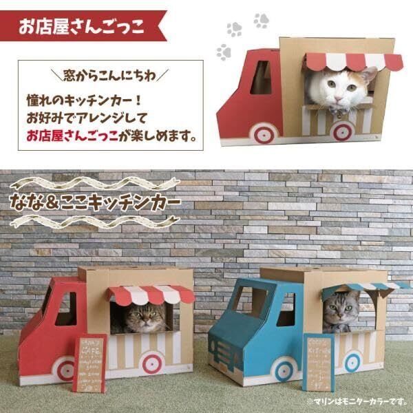 猫の大好きがたっぷり詰まった車型ハウス お好みでアレンジしてお店屋さんごっこが楽しめます。 くり抜いたパーツは、メニューやメッセージを書き込めるミニボードになります。