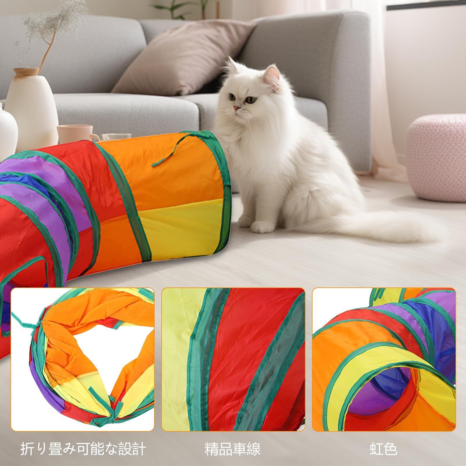 猫 トンネル 長い キャットトンネル 長さ123cm トンネル ペット おもちゃ 折りたたみ式 猫 玩具 トンネル レインボー トンネル 猫、小型犬、子犬、子猫、ウサギ用 ペットおもちゃ 収納便利 運動不足対策 ストレス解消