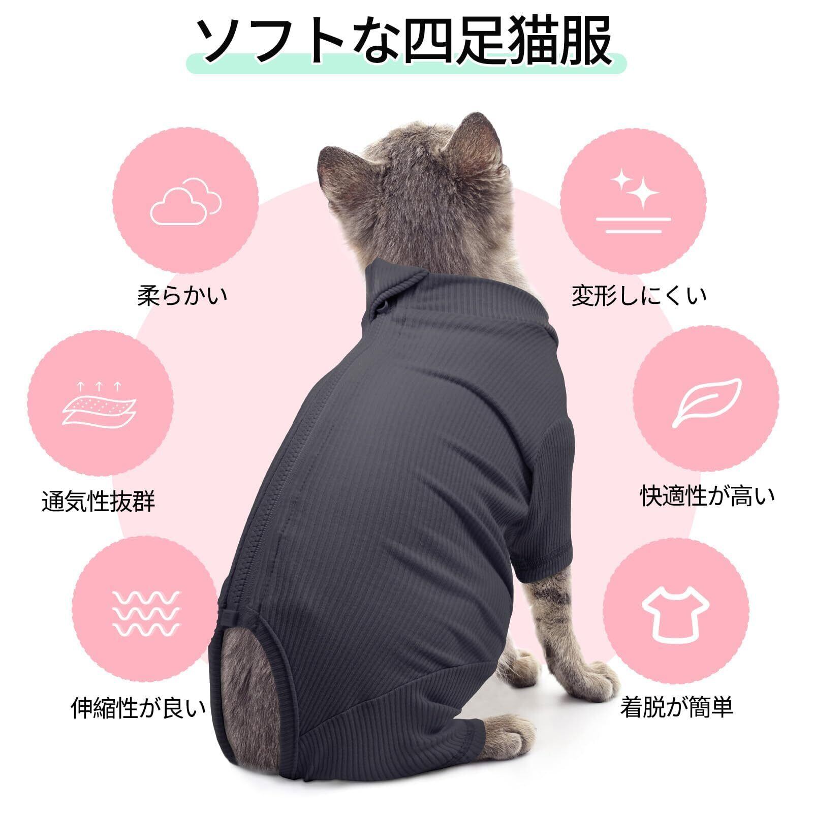 DENTRUN猫 服 猫用 ロンパース パジャマ 猫の服 引っ掻き対策 軽量 快適 柔らかく肌に優しい 四つ足 ペット服 皮膚保護 通気性 通年着(グレー, XS)