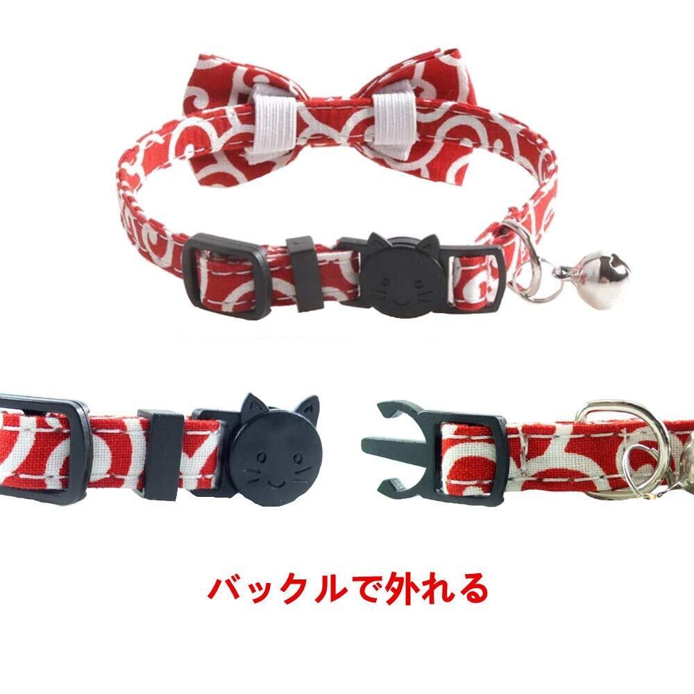 THAIN 猫首輪 唐草 赤 セーフティバックル付 猫 首輪 すず リボン 安全 鈴付 アクセサリー 和風モダン かわいい 迷子ふだ ネームタグ(1本入り レッド)