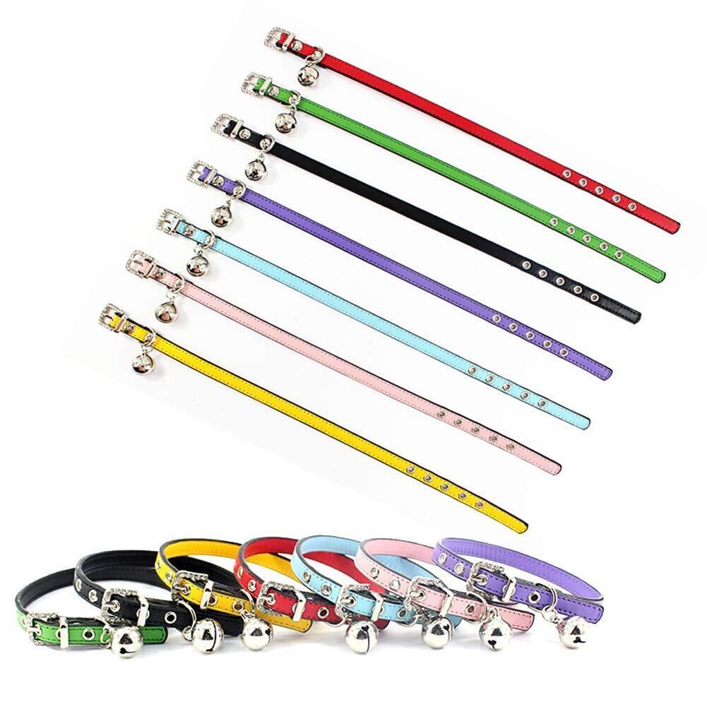 ネコ 首輪 猫くびわ 鈴つき ペットの首輪 ブルー子猫の首輪鈴付き 安全首輪 PU レザー 【子犬 首輪 |ネコ 首輪 | 子猫首輪|猫用首輪|犬用首輪】 【幅0.9cm 16-22cm首回り対応,レッド】