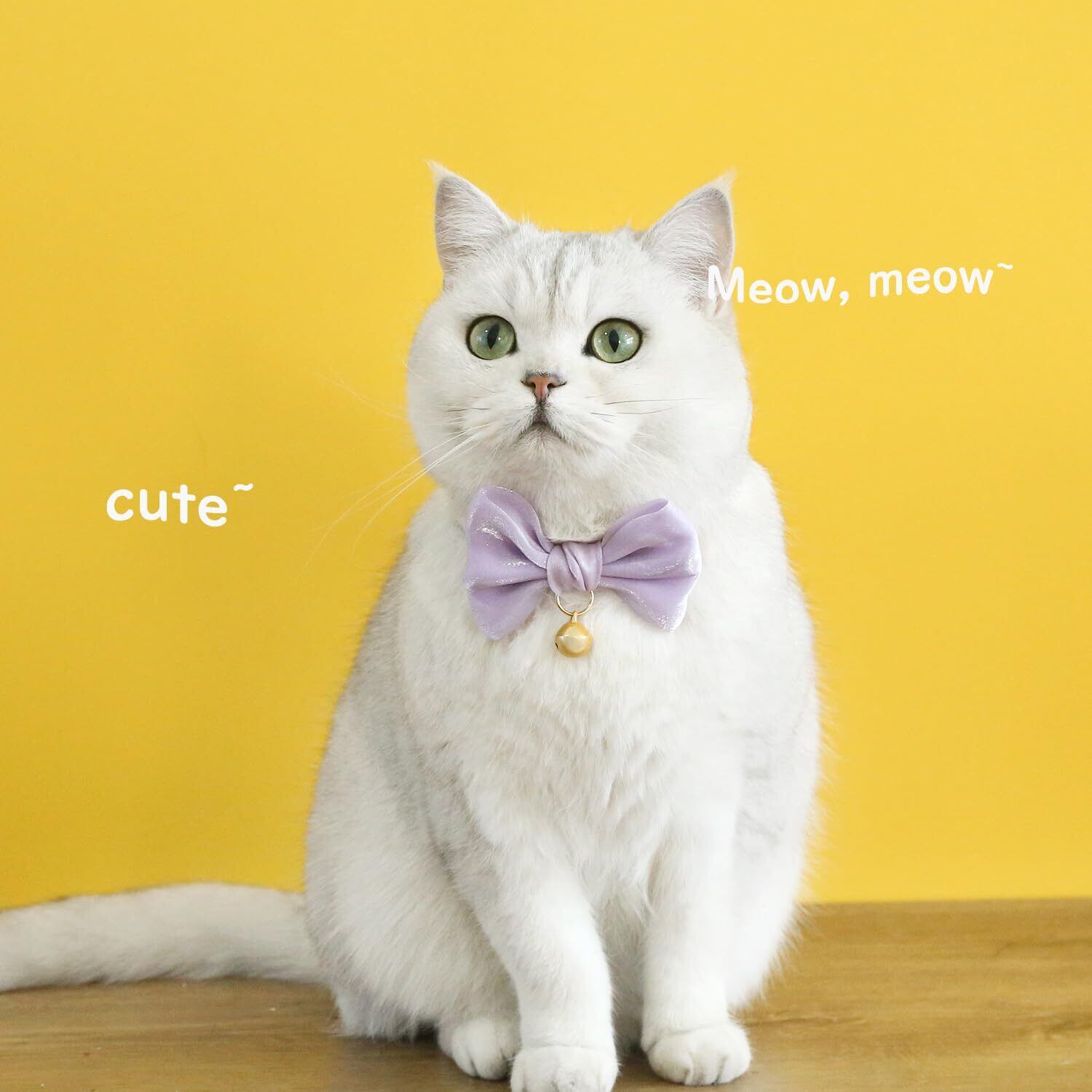 ペット首輪 猫用 犬用 ペット用 かわいい 鈴付き リボン付き 柔らかい 猫/小型犬に適用 オーガンザ 軽量 18-33cm調節可能 パープル