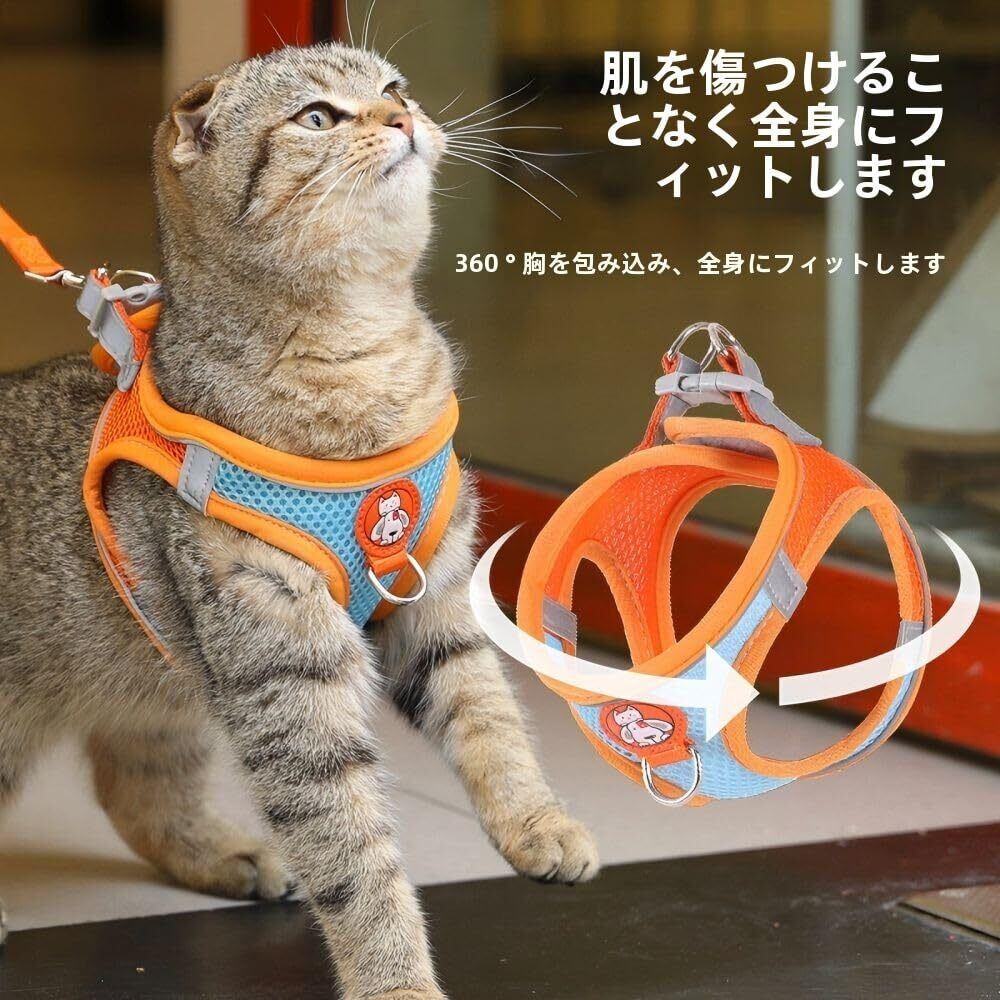 猫ストラップ牽引ロープセット通気メッシュ夜反射縞付き猫体輪猫散歩軽量通気素材猫用犬用 (S)