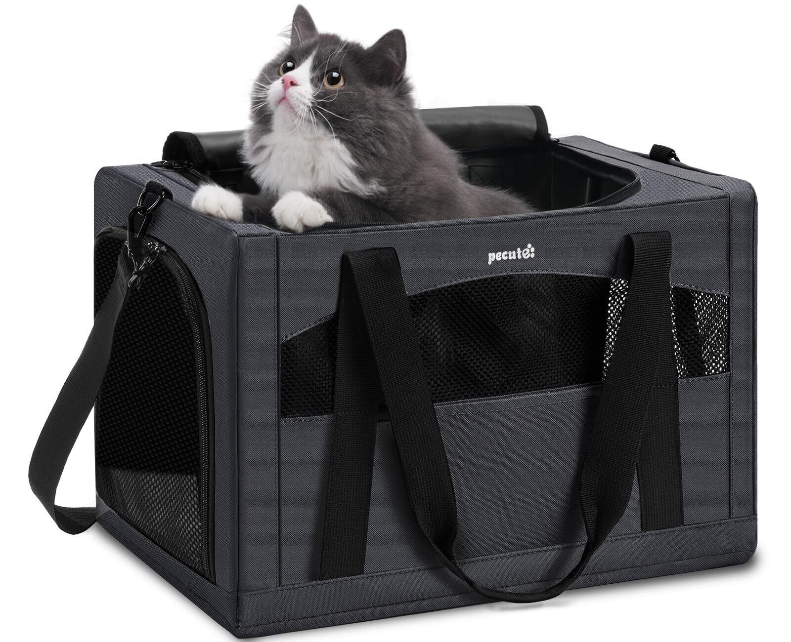 Pecute ペットキャリー 猫キャリー バッグ 手提げ 猫 キャリー ショルダー 猫 きゃりーバッグ 猫 ウサギ 小型犬 小動物用 リュック 通気性 折りたたみ お出かけ ドライブ 旅行 通院 防災 避難用 ダークグレー
