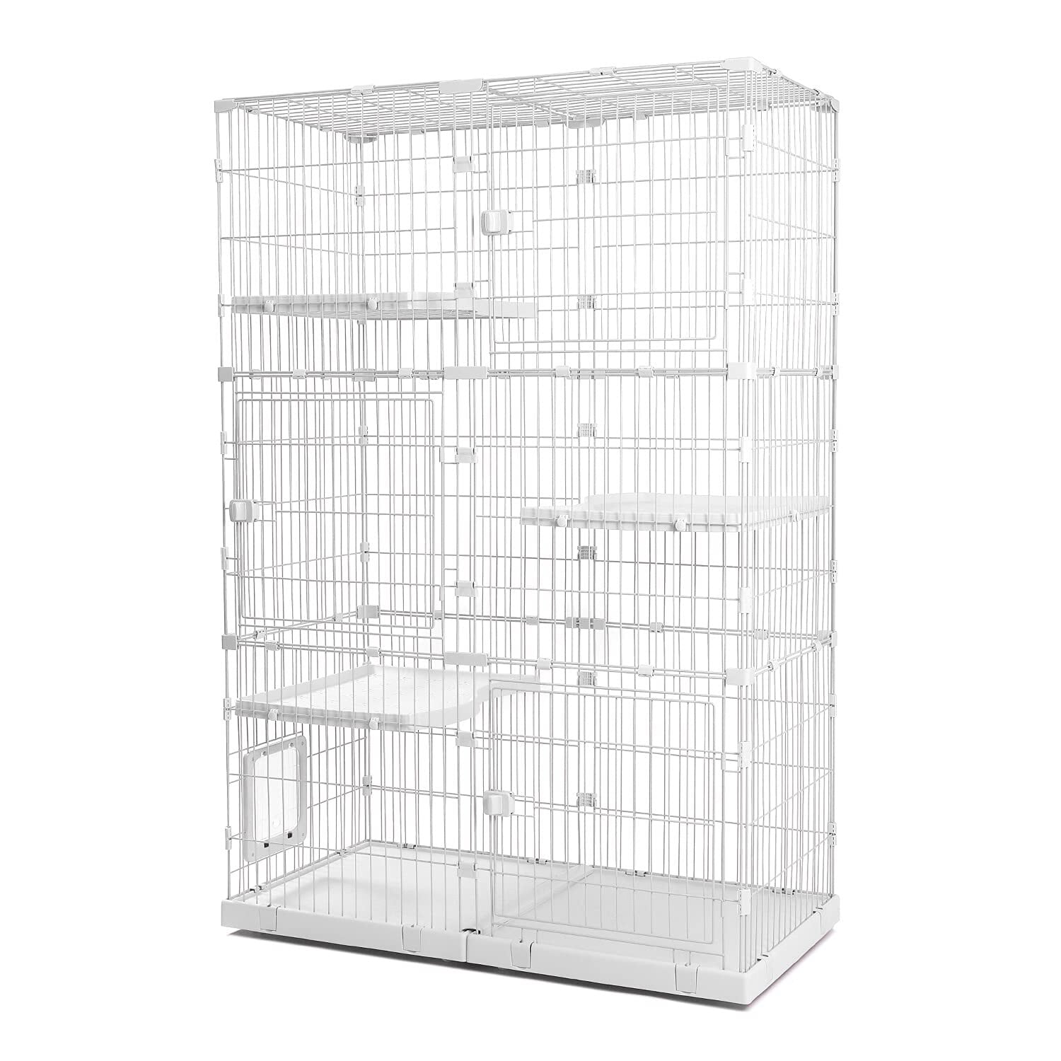 PETEPELA(ぺテぺラ) 猫 ケージ 大型 3段 2段 大型猫 多頭飼い キャットケージ 猫用エンクロージャ キャスター付き 大きめ 増やせる 拡張 ワイド 広い ケージセット 組み立て簡単 足場 室内飼い 人気 おしゃれ - L ホワイト 幅123×奥行62.5×高さ184.5cm