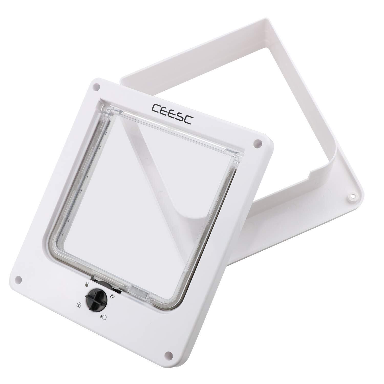 CEESC [バージョンアップ]中キャットドア、室内外装ドア用4ウェイロックキャットフラップドア、キャッツ&ドギー用耐候性ペットドア(ホワイト、M)