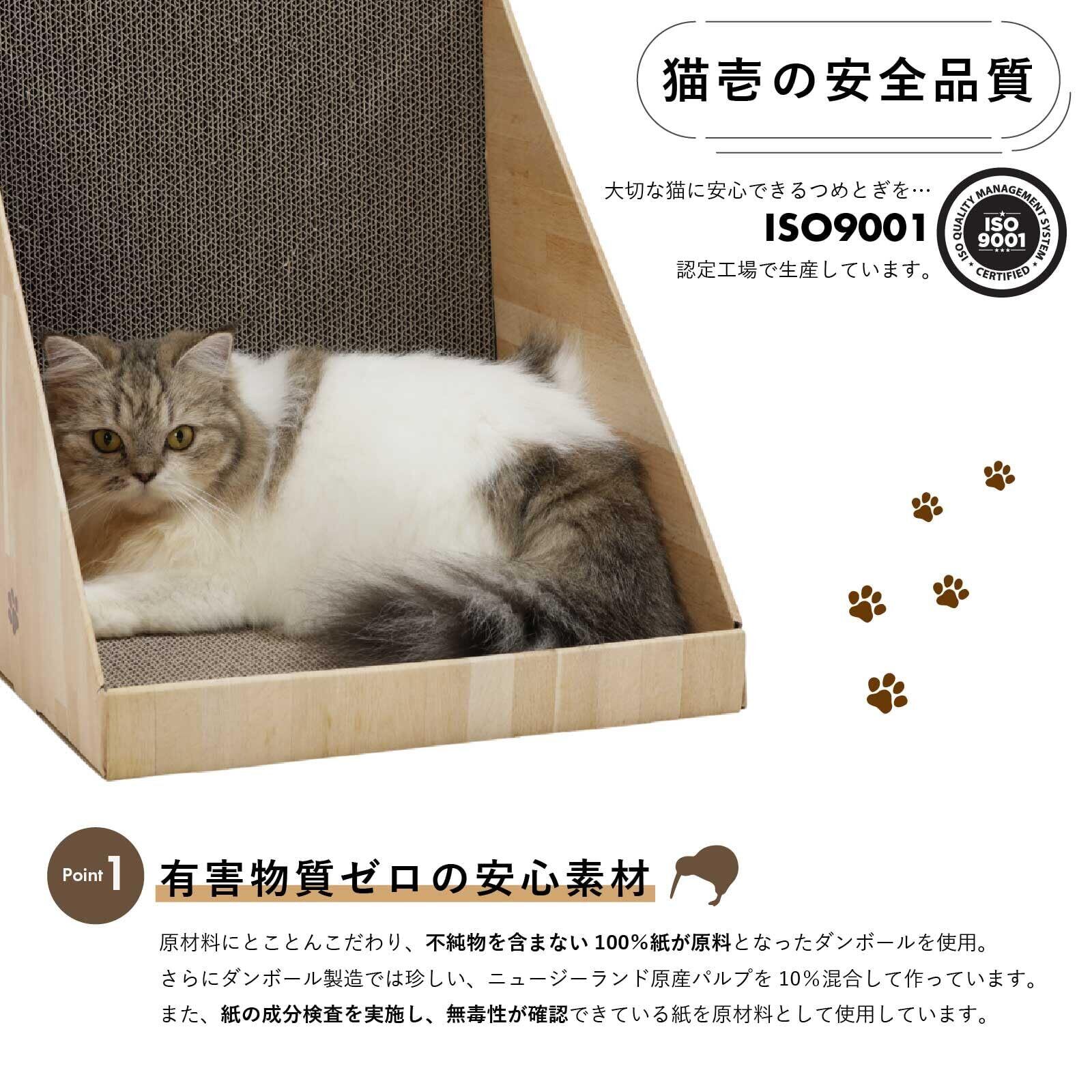 高品質なダンボール素材を使用しており、耐久性抜群。猫ちゃんの爪にも優しく、安心して使用できます。毎日のおもちゃとしても楽しめる構造となっています。