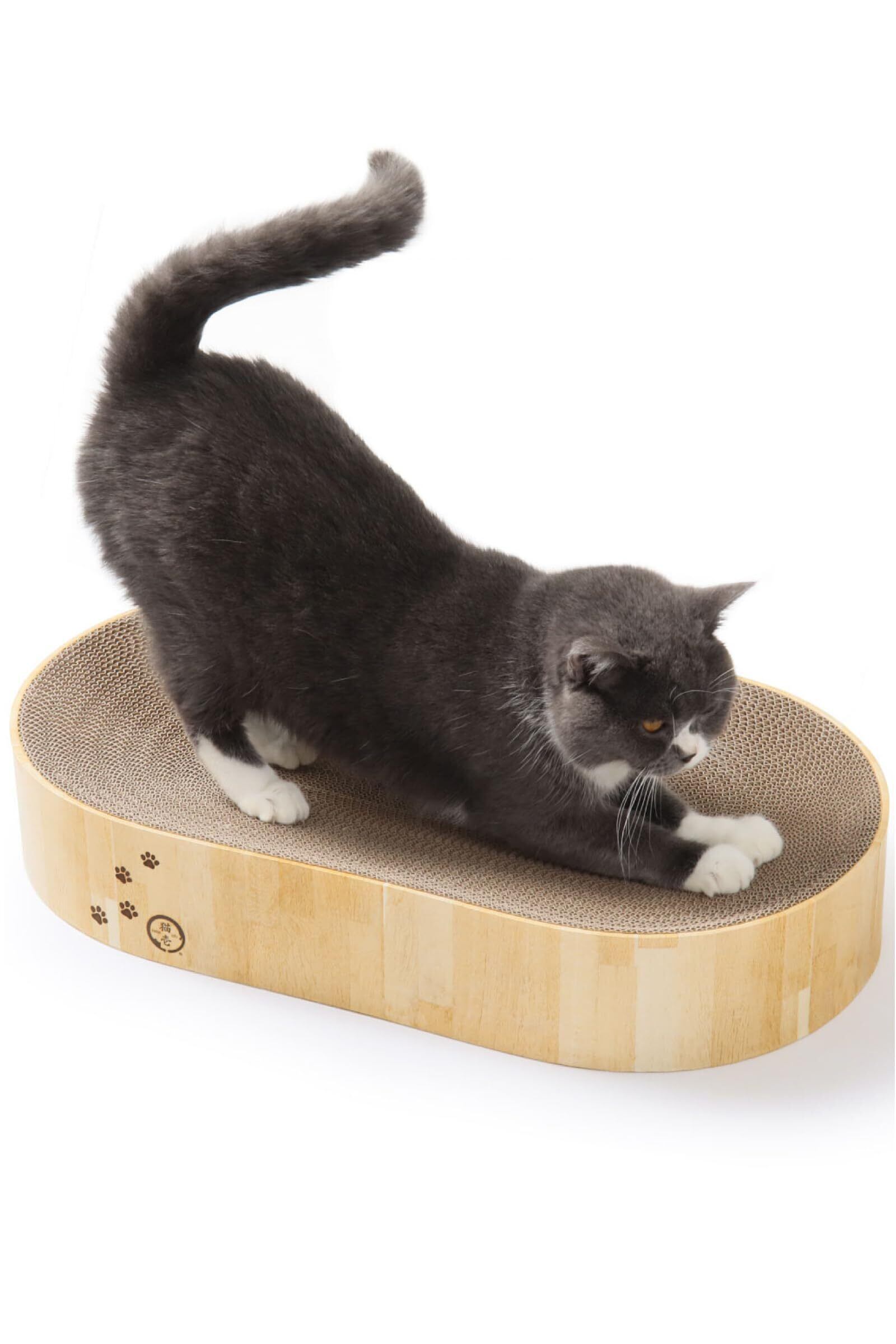 【大人気バリバリボウルが”横長”に】からだフィット形状のつめとぎベッドとして、猫から大人気のバリバリボウルの “オーバル”タイプです。つめとぎベッドはレギュラーサイズ比、約1.5倍でたっぷりつめとぎを楽しめます。