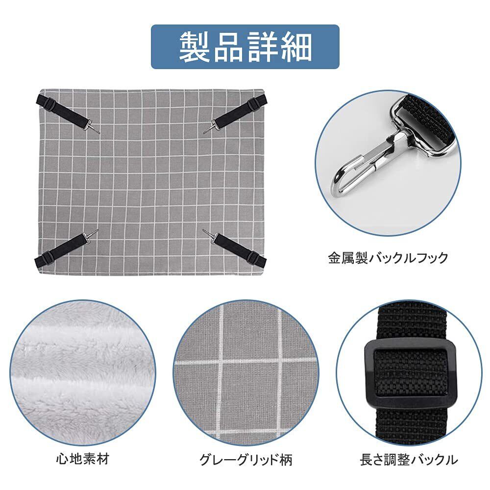 YFFSFDC 猫 ハンモックはんもっくキャット 椅子 ケージ用 大きい 耐荷重10KG サイズ調整可能 58cm x 48cm、遊び場 通気性 金具丈夫 冬夏両用長さ調節可能 両面使用 (グレーグリット, L)