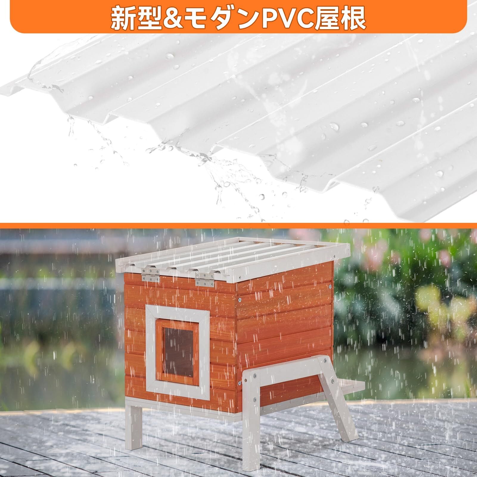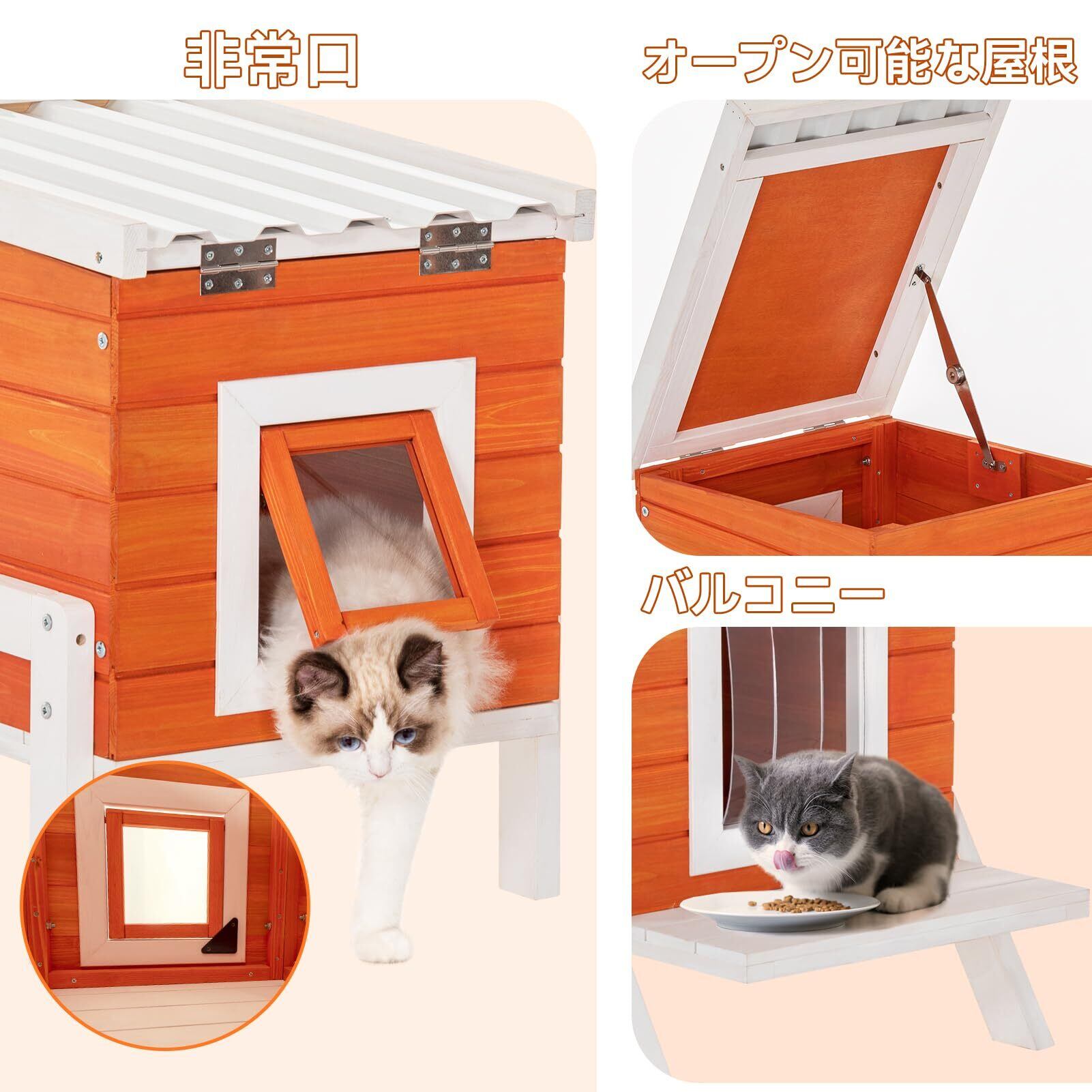 PETSFIT 外猫ハウス 野良猫 夏 日射し遮蔽 屋外用 猫/うさぎ 野外ハウス アウトドアハウス 防水 防寒 冬 木製 ベッドハウス 室内 (オレンジ)