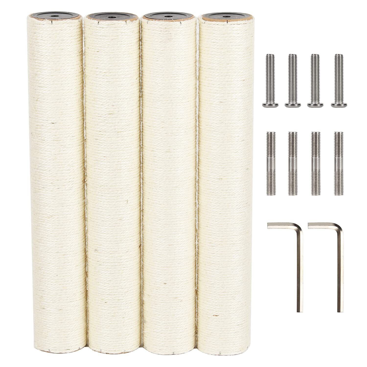 ECCIBOUN 4本セット 直径7.4cm 猫 爪研ぎ キャットタワー ポール 替え 交換 麻柱 交換用 支柱 (40cm*4本, M10)