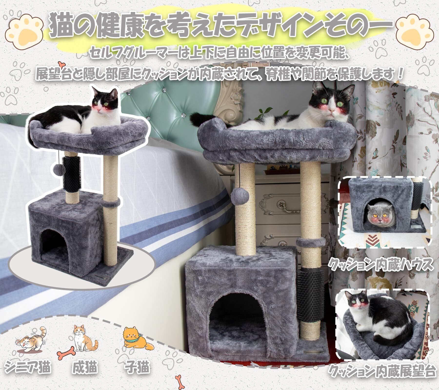 【猫の健康をサポート】独自の形状を配して、自己グルーマーで猫の毛玉を減らすことができます。また、取り外し可能なカバーを備えた猫ベッドと猫キャビンは簡単に掃除することができ、猫の環境を衛生的に保つことができます。
