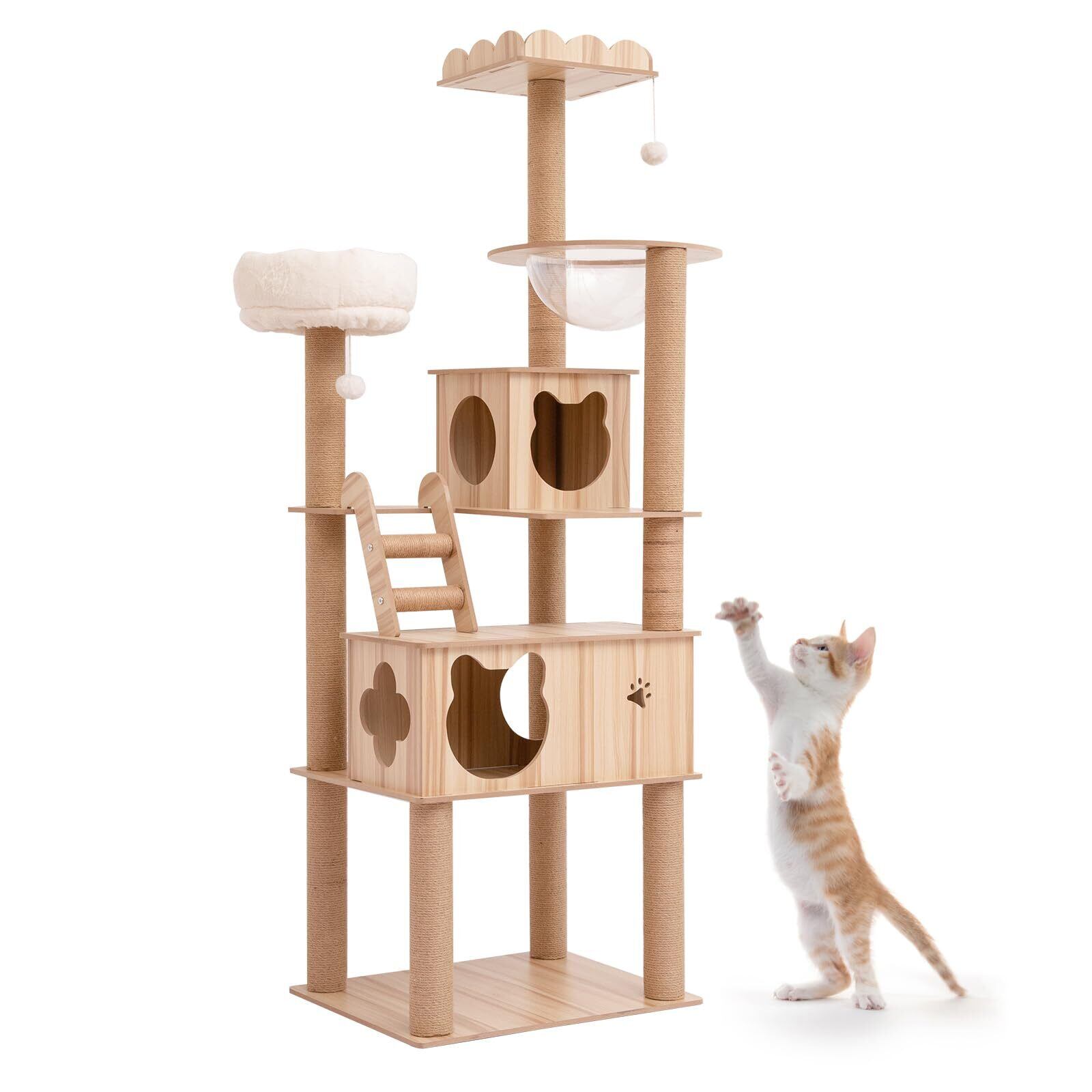 PETTOM キャットタワー 猫タワー 大型猫用 ねこハウス 木製 多頭飼い 据え置き 高い安定性 丸角設計 可愛いデザイン 省スペース (180cmタワー)