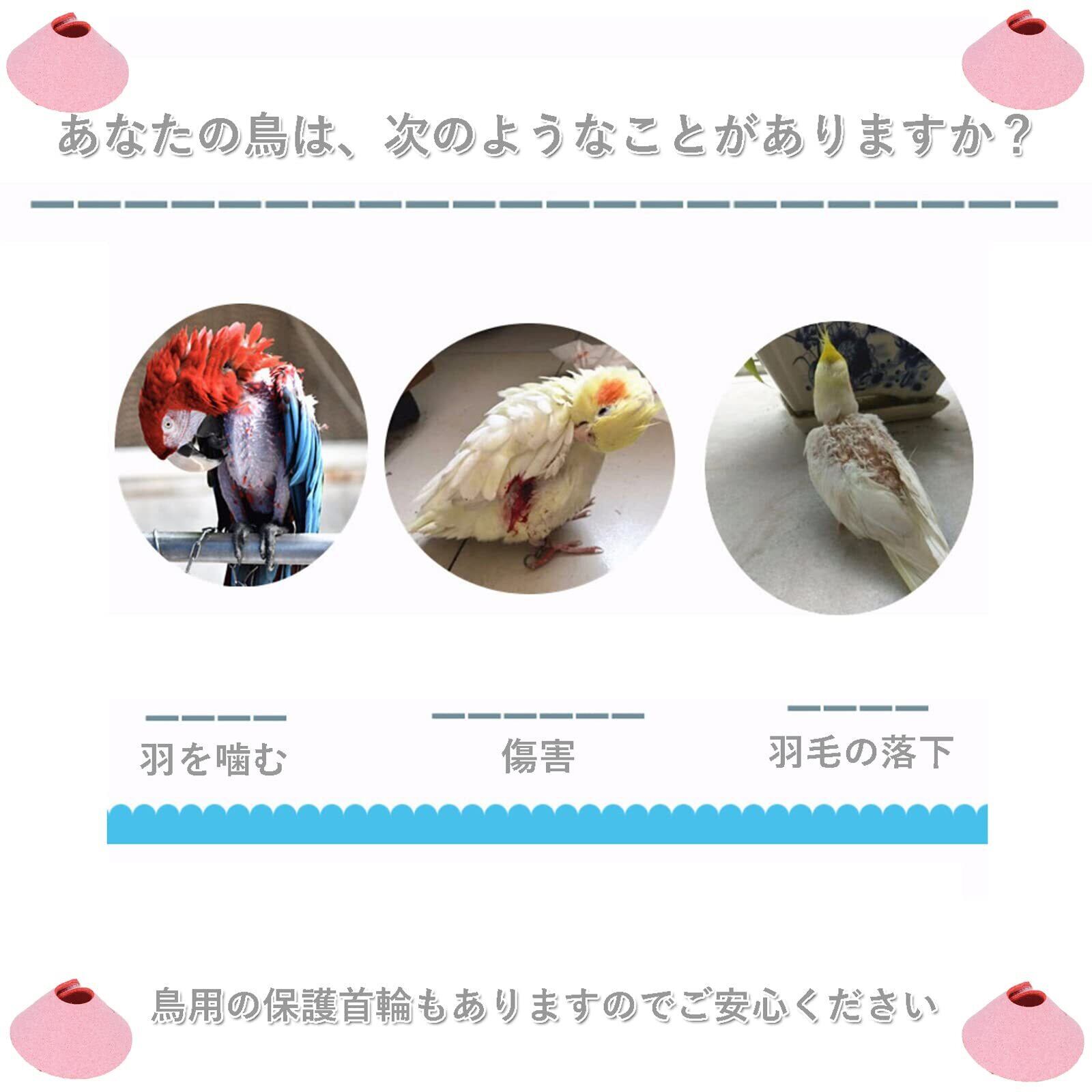 愛鳥が安心して生活できる環境を整えるためのベストパートナーです。このエリザベスカラーを使うことで、飼い主様も安心して愛鳥の健康管理ができます。