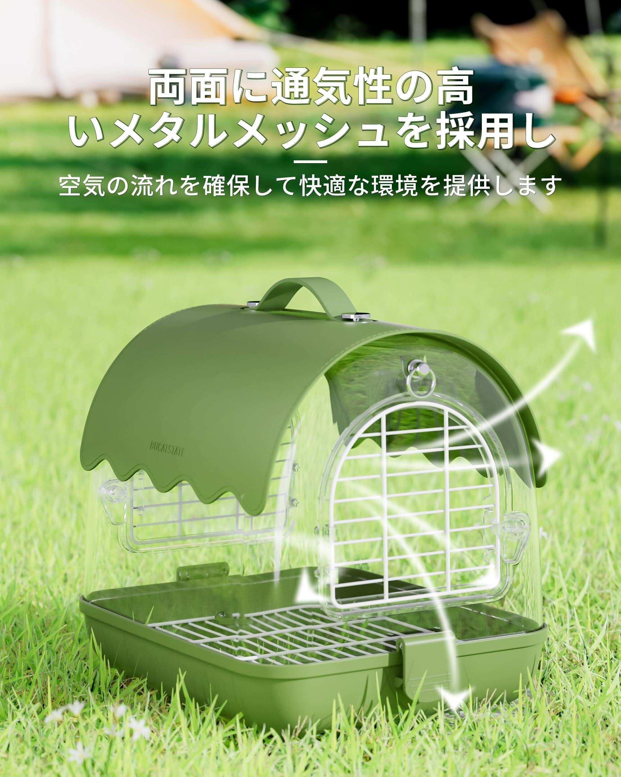 BUCATSTATE お出かけ ケージ 飼育ケージ 鳥かご バードケージ 持ち運び 通気 透明 シェード付き おしゃれ 手提げ 肩掛け 2WAYタイプ インコ、ハムスター、ハリネズミ、爬虫類など小動物用 おでかけ ケージ グリーン