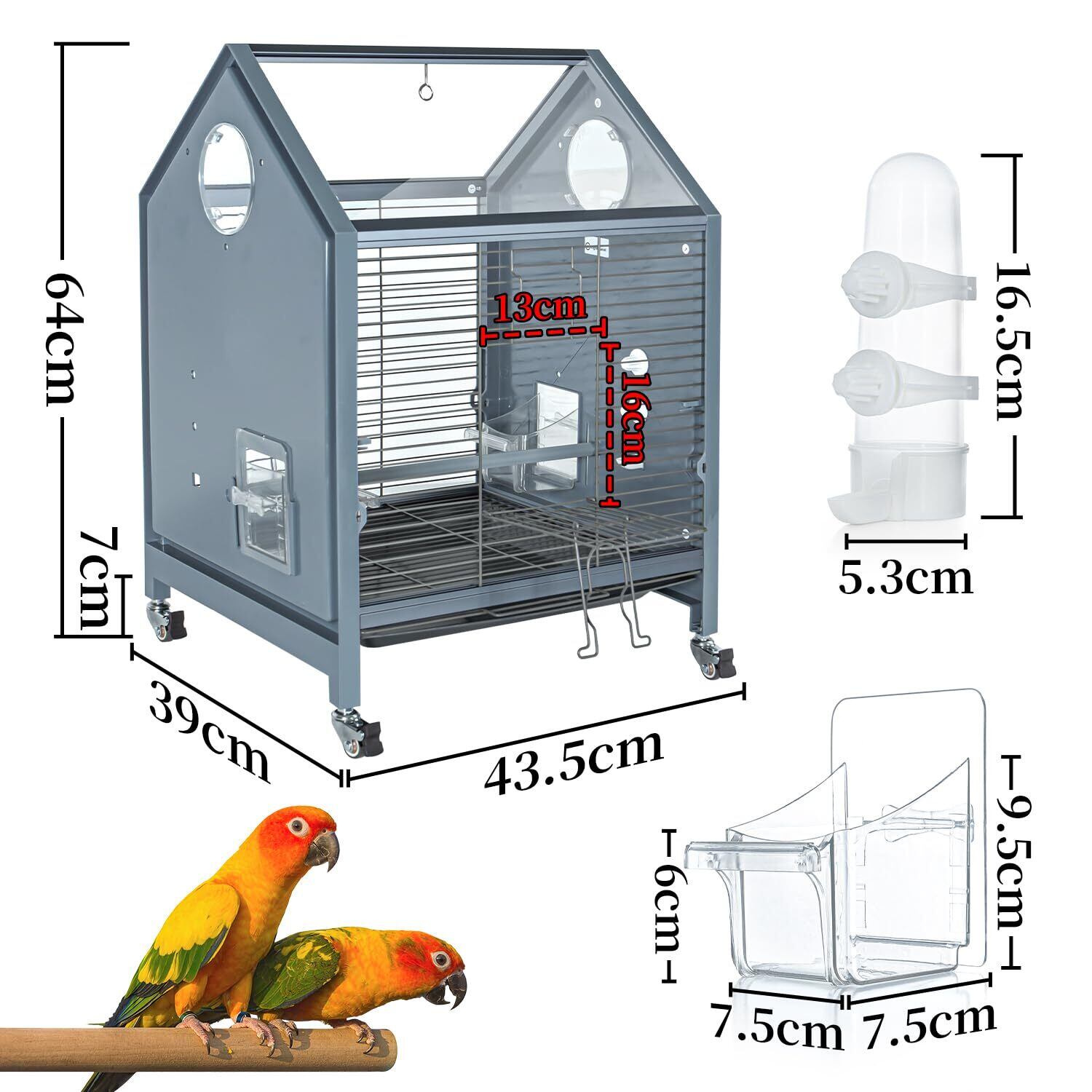 頑丈な構造:この鳥籠は、長さ43cm×幅39cm×高さ59cmで、フェンス間隔は1cm、小鳥が逃げ出すのを防止します。鳥かごは高級の防錆金属線で作られており、無毒のアクリル製パネルと組み合わされ、鳥類に健康で安全な生活環境を提供します。