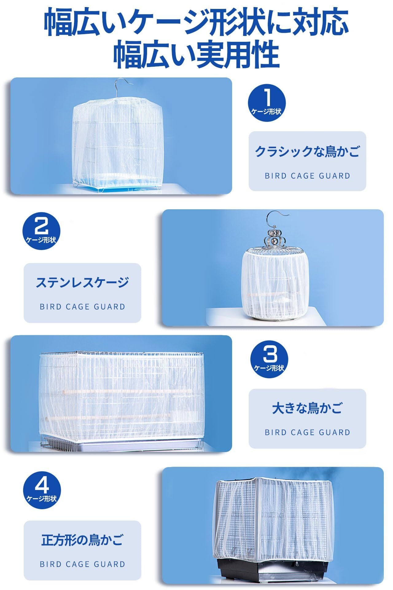 鳥かご ケージカバー メッシュカバー 防塵加工 食べこぼしを防ぐ 伸縮性 通気性 洗濯可能