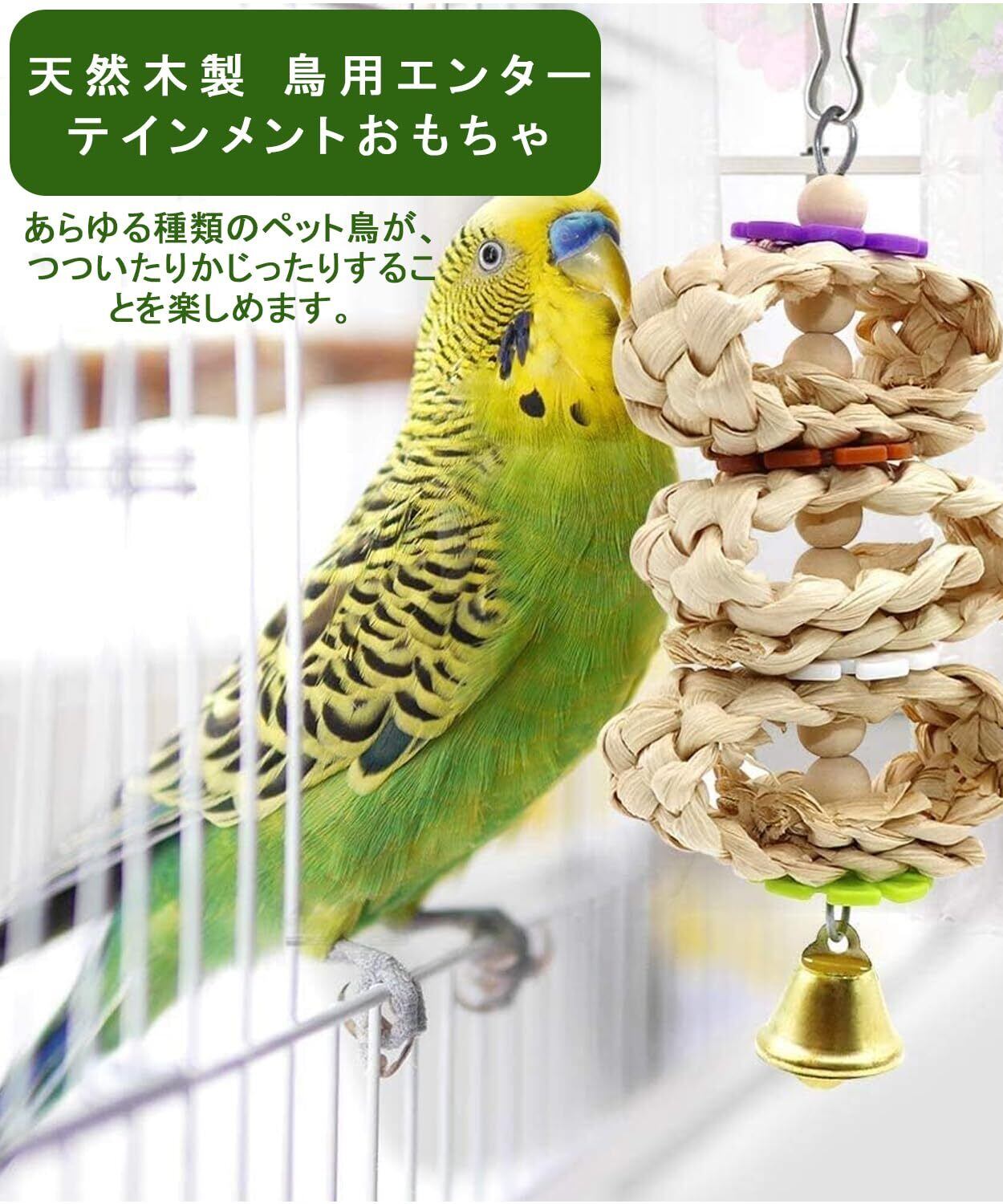 【幅広い用途】無着色木+艶消し綿ロープ、全鳥種対応(セキセイインコ/オカメインコ/ボタンインコ/コンゴウインコなど)、中小型オウムが安心して遊べます。