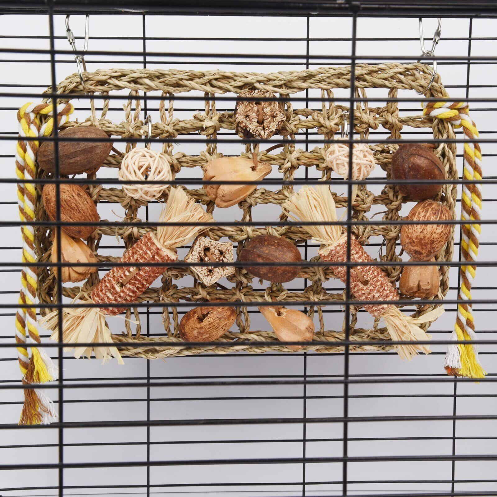 特別な外観:とても特別なネットの形のおもちゃですから、オウムに独特な体験を与えることができます。塗料不使用、安全性が保ちます。熟練職人の手作業により磨き上げて丁寧に仕上げました。鳥のくちばしつつきに耐えられ、強くて長持ちできます。